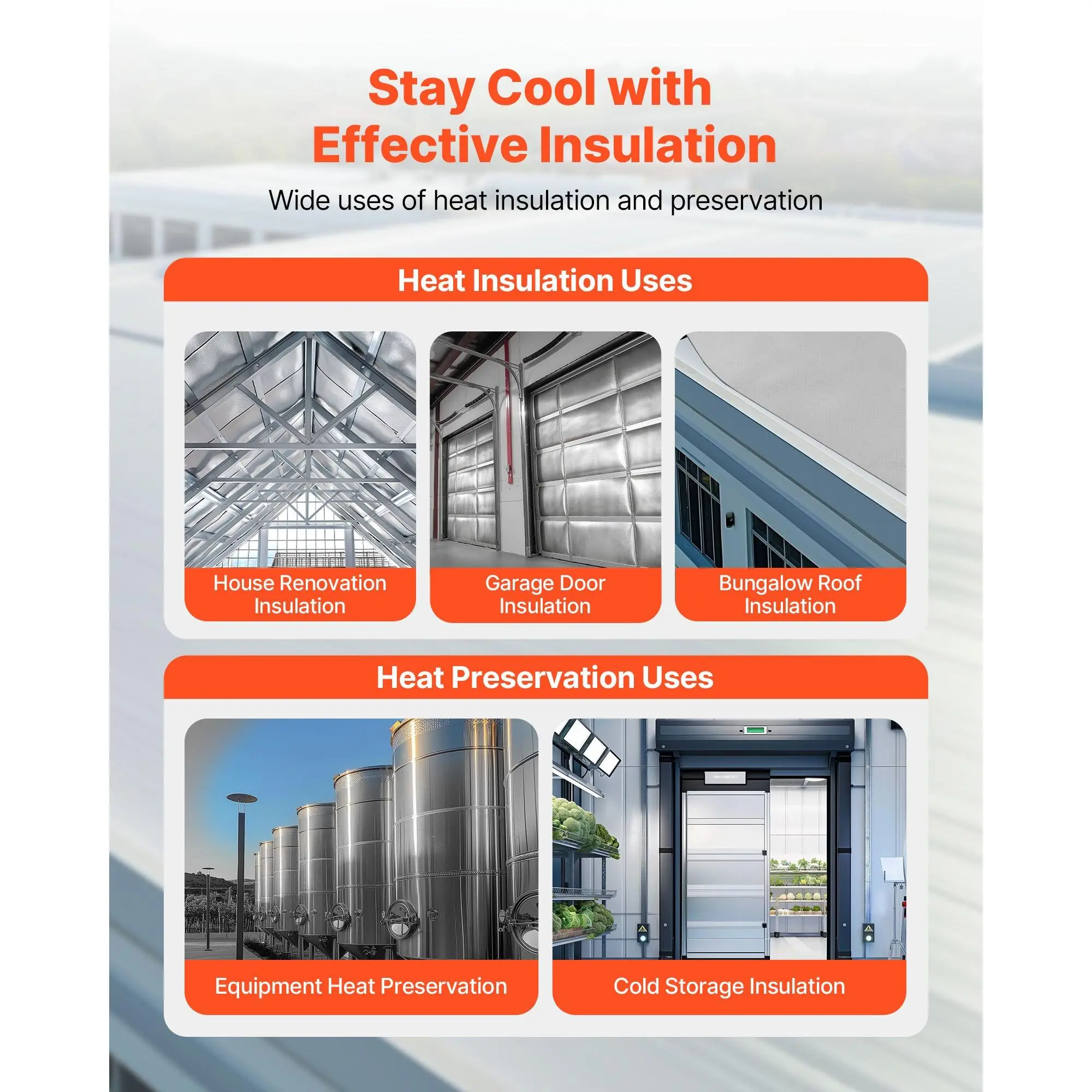 VEVOR double reflective insulation roll features 95 high reflectivity, utilizing double reflective aluminum foil and perforated woven fabric. It blocks sunlight in summer while preventing indoor heating loss in winter, maintaining a comfortable indoor temperature.