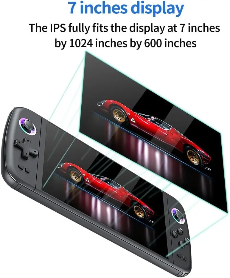 ·1. 7-Inch IPS HD Large Screen – Immersive & Eye-Friendly Featuring a 7-inch IPS HD display, this retro console offers a 40% larger visual area than most competitors, doubling your gaming excitement. With a 1024×600 resolution, it delivers vivid colors and rich details, restoring the authentic charm of classic games. The low-blue-light eye-protection design ensures minimal eye fatigue even during extended play sessions. Supporting over 30 mainstream global languages, it enables seamless one-click language switching for global users.