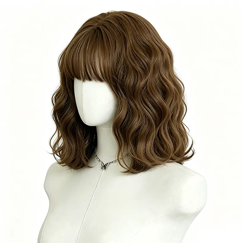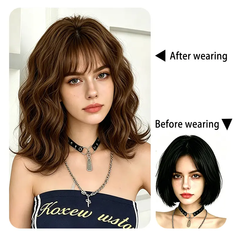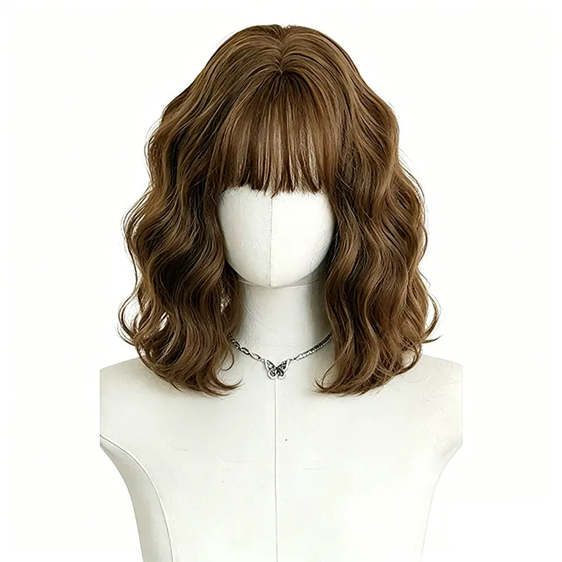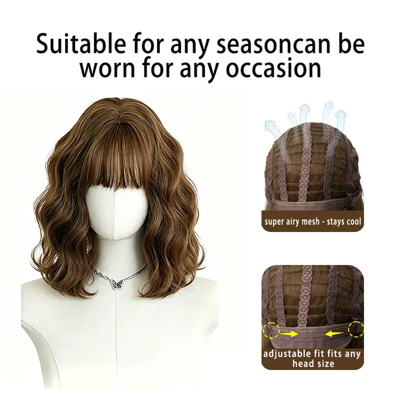 Lotfon Women's short curly Ash Brown non-adhesive synthetic wig, adjustable head circumference, comfortable fit, easy to wear, ready to wear and go, easily achieve a fashionable look