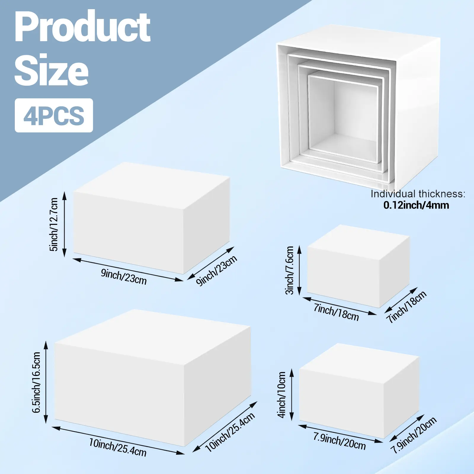 ·【Wide Range of Uses】 Acrylic cube display risers are nesting and stackable, with hollow bottoms, and can combine various display methods. Display platform is not only ideal for displaying food but also jewelry, collections, crafts, figures, gemstones, perfumes, cosmetics, etc.