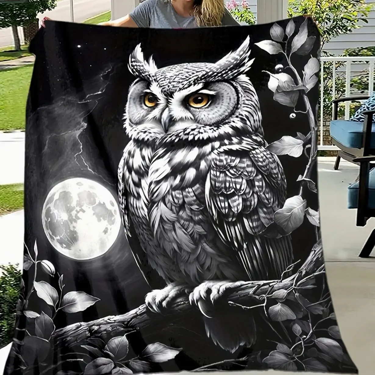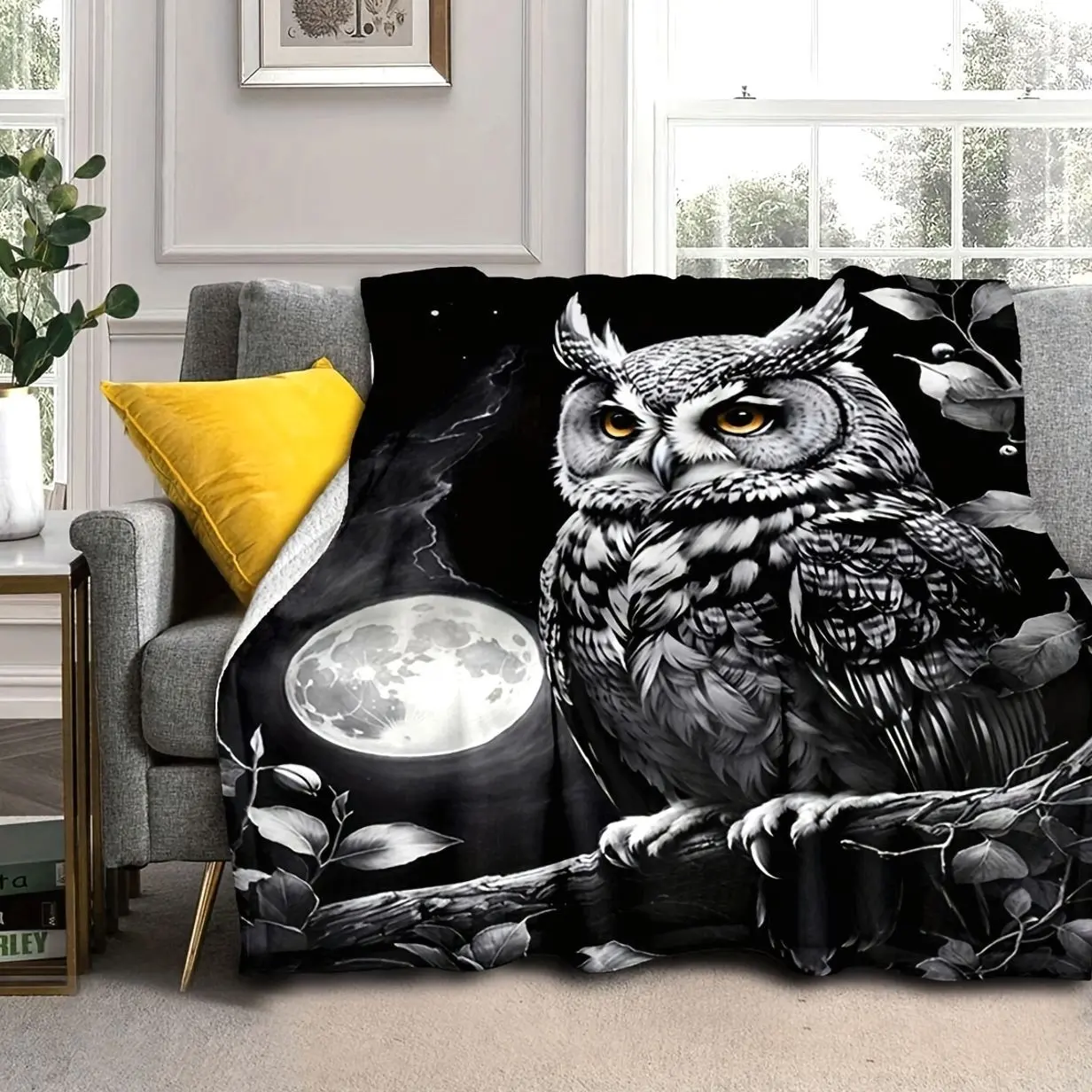 Cozy Owl Print Flannel Throw Blanket - Soft, Warm & Versatile for Couch, Bed, Office, Camping | All-Season Gift Idea M