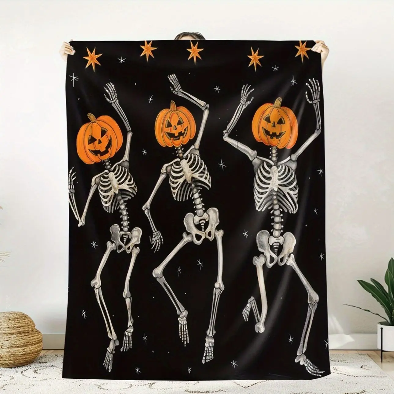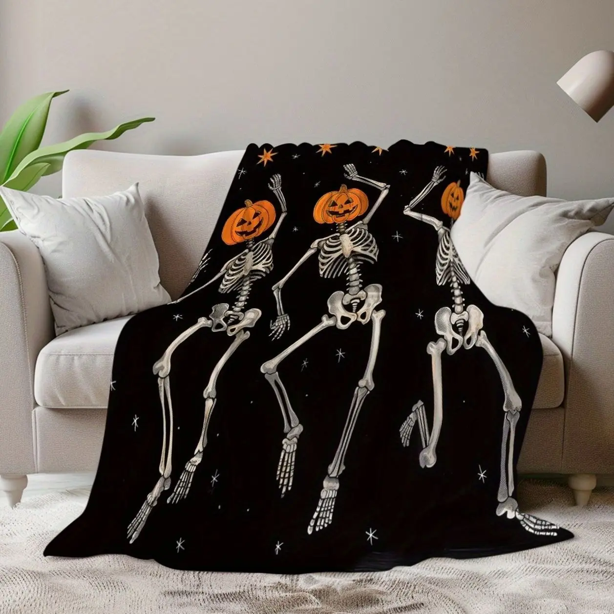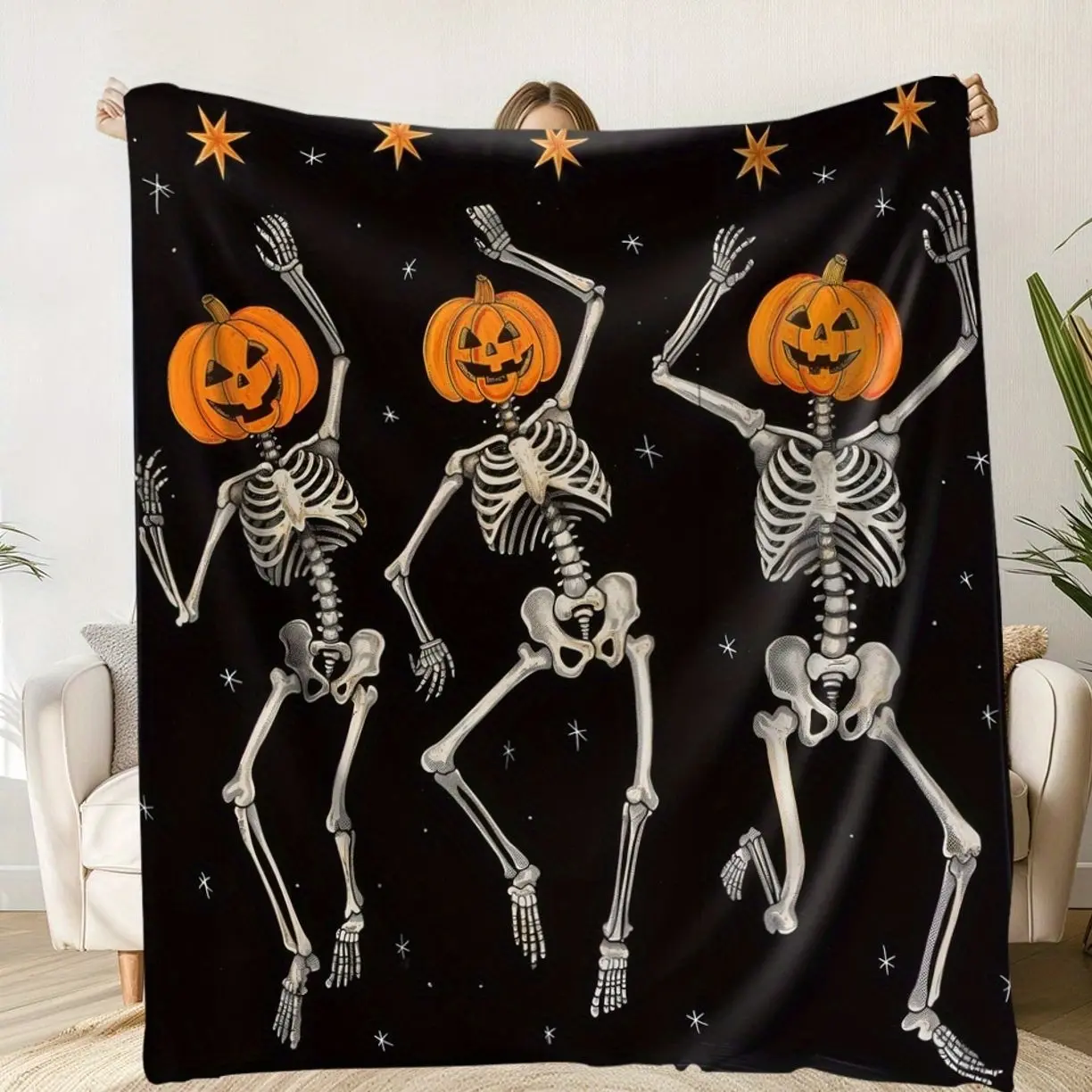 1pc of Halloween-Themed Blanket Featuring Spooky Pumpkin Skeletons, Cozy And Warm, Perfect for Cherishing Memorable Times. an Excellent Holiday Gift for Classmates, Friends, Family 7