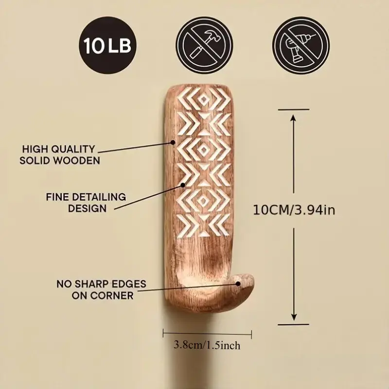 【Geometric Patterns】: Featuring rustic geometric patterns, these hooks enhance the aesthetic appeal of your walls.