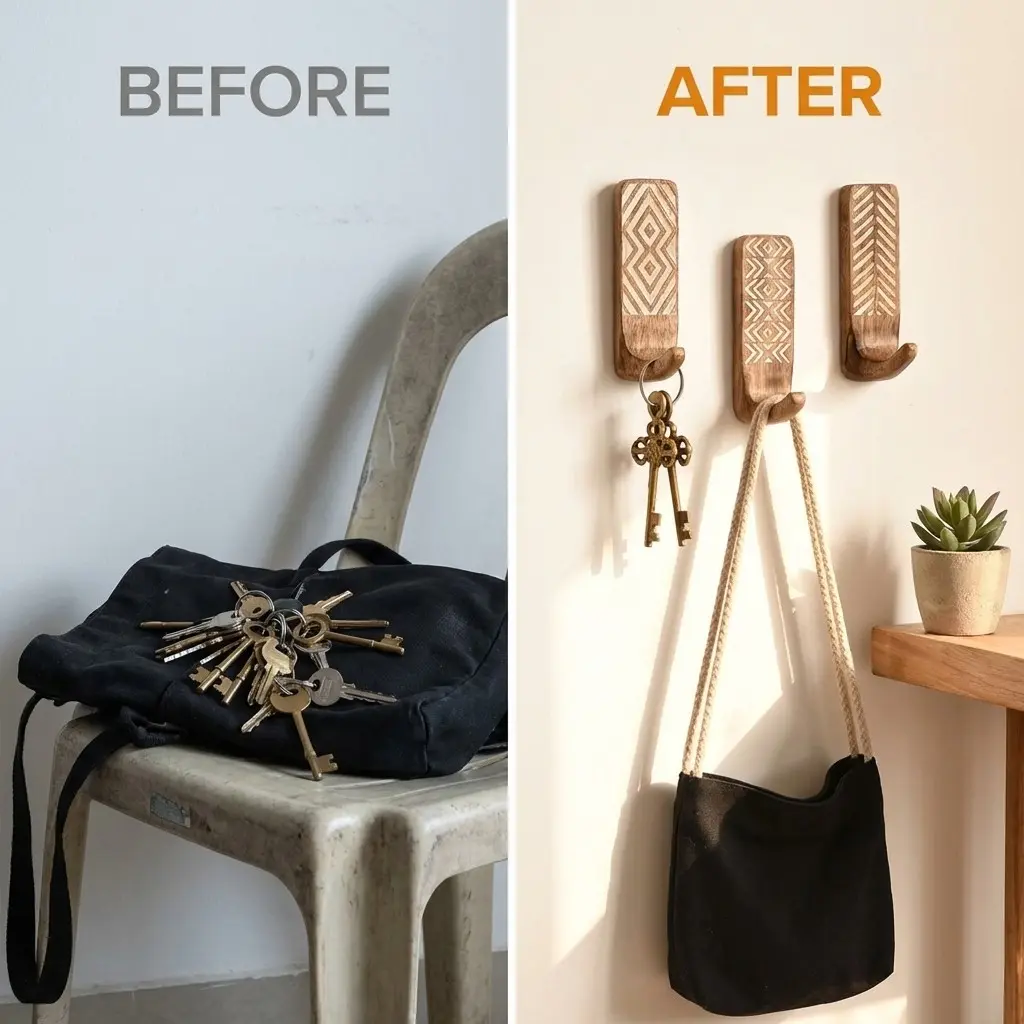 【Hand Carved Craftsmanship】: Each hook showcases intricate hand-carved details, adding a unique rustic charm to any space.