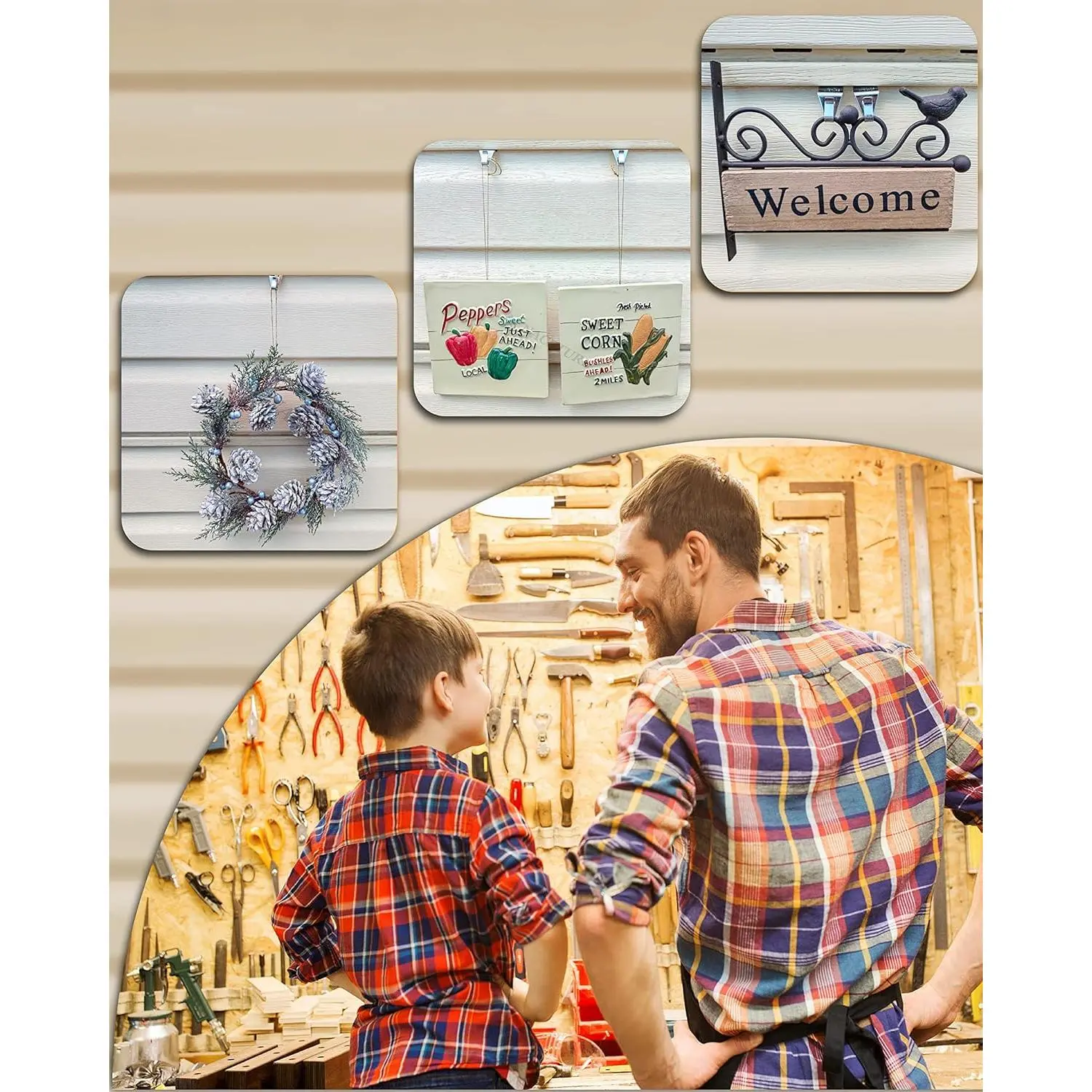 Dont' warry about to damage your vinyl siding wall, our vinyl siding hook can solve your promble.