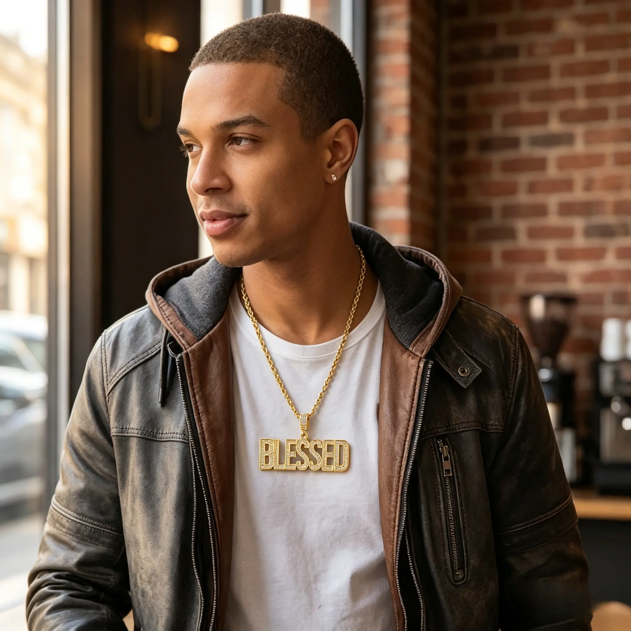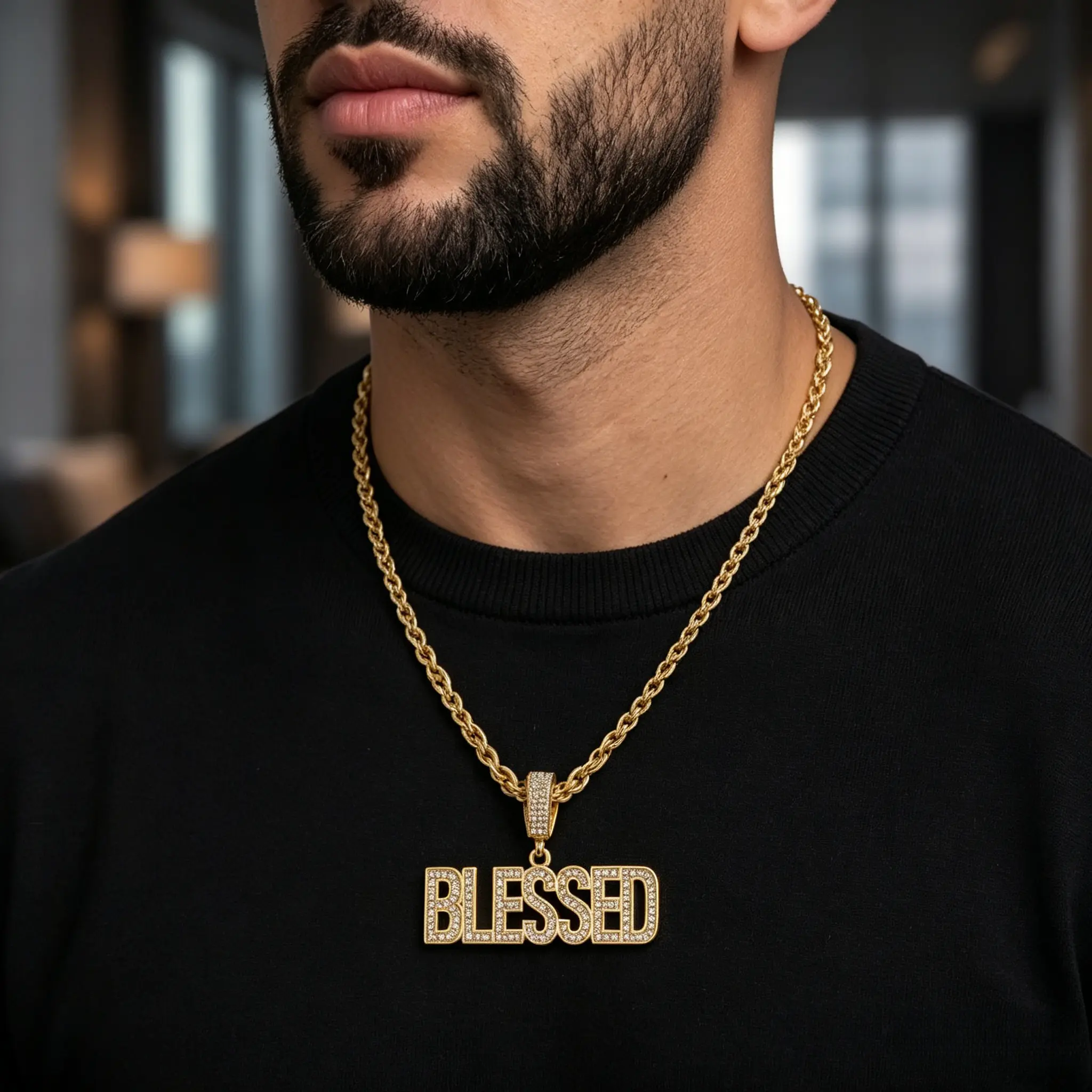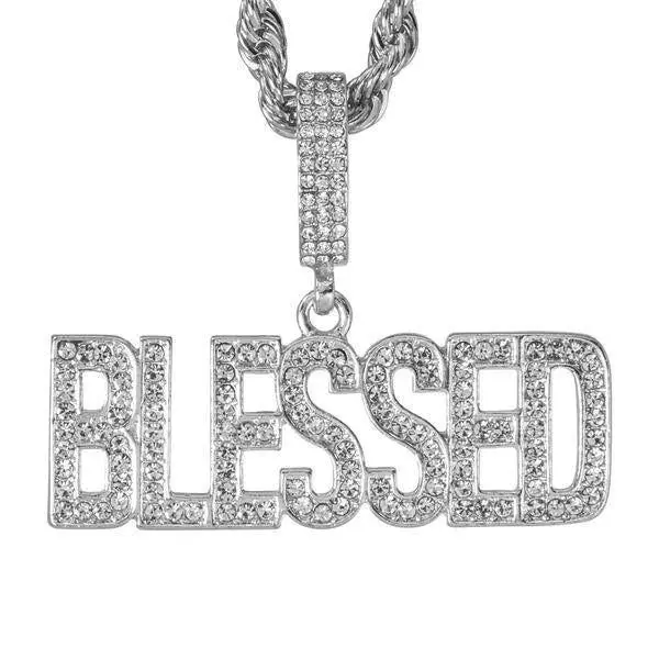 Men's BLESSED Cuban Chain Necklace, Hand-Set Sparkling Crystals