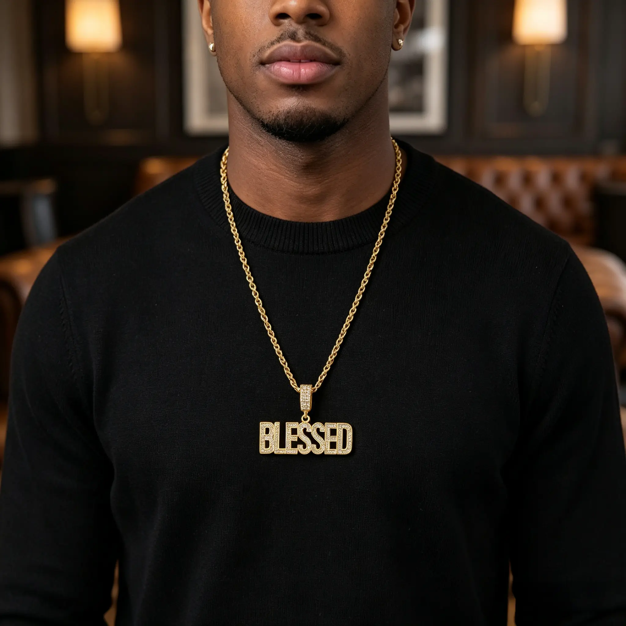 5. Men's BLESSED Cuban Chain Necklace, Hand-Set Sparkling Crystals