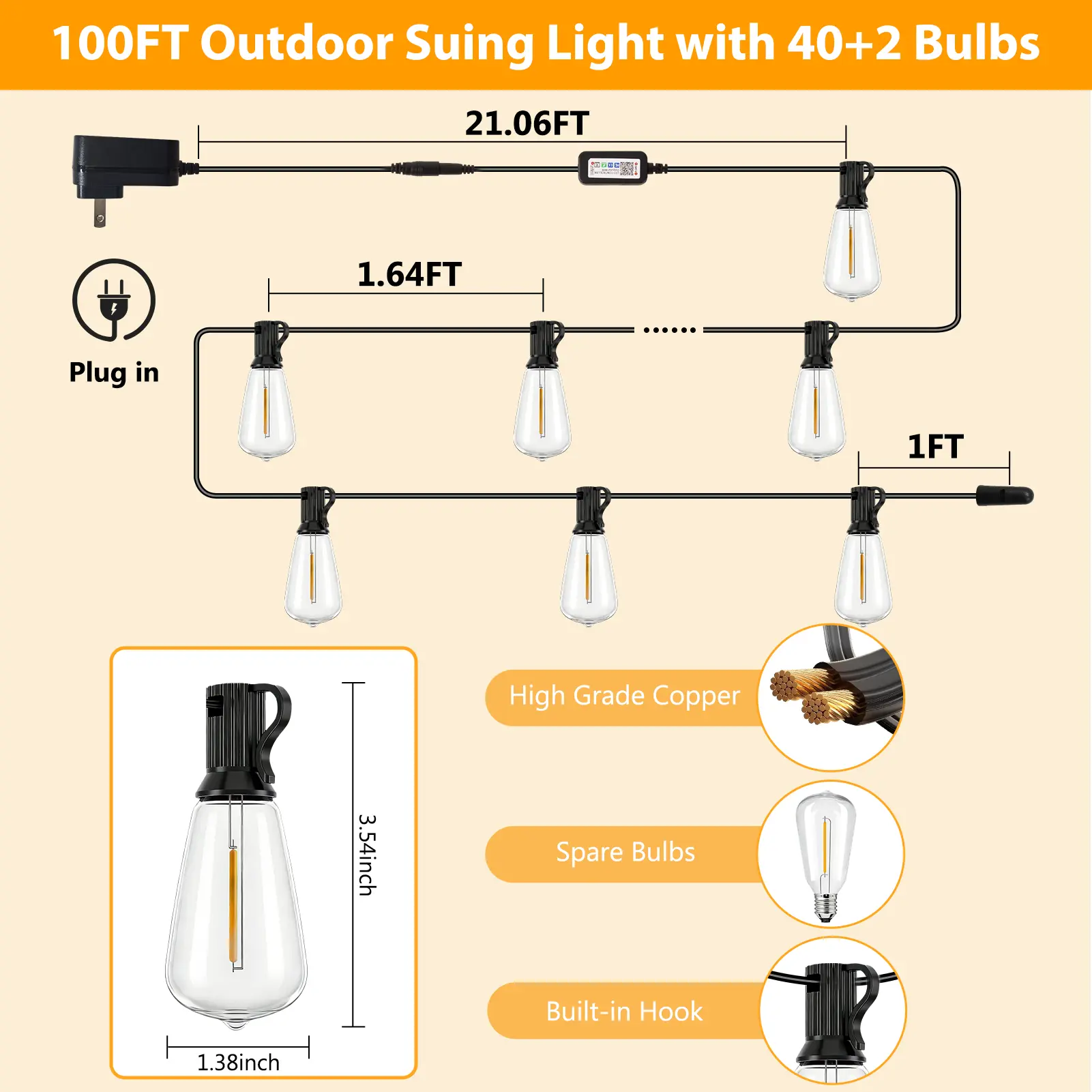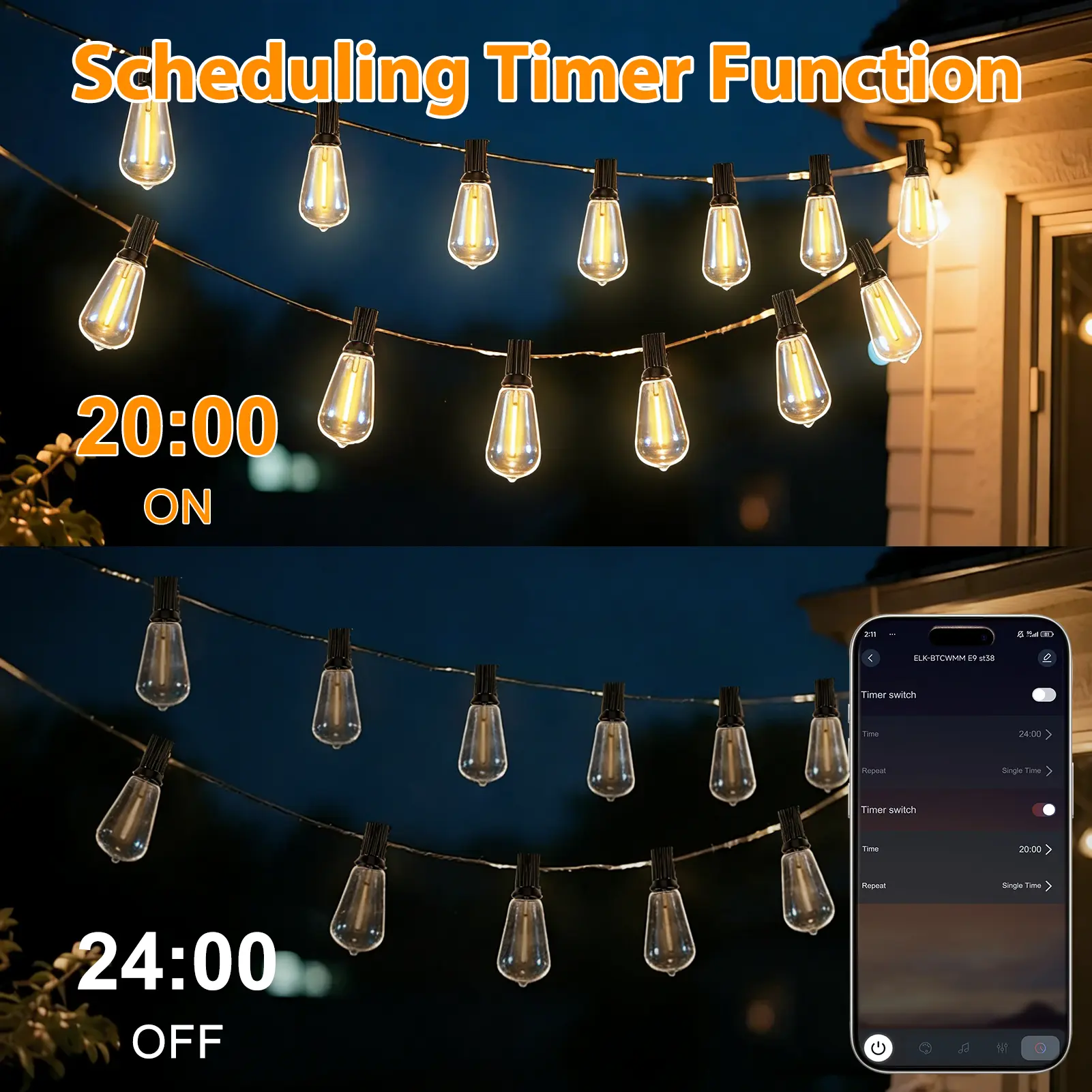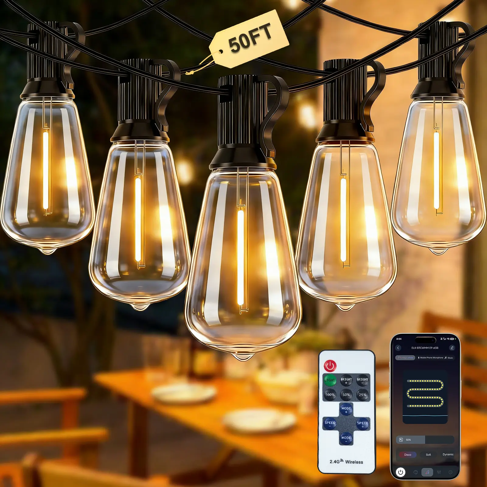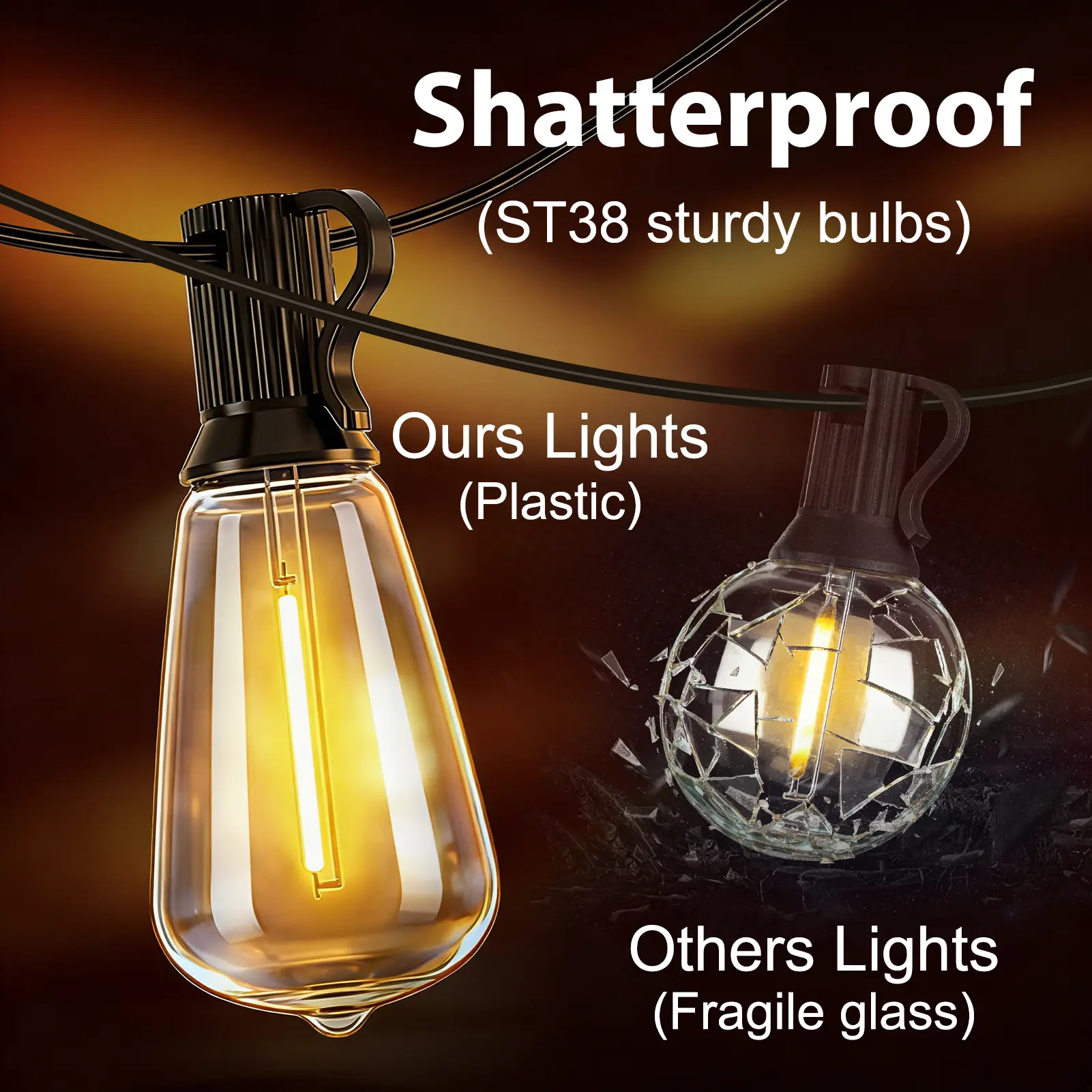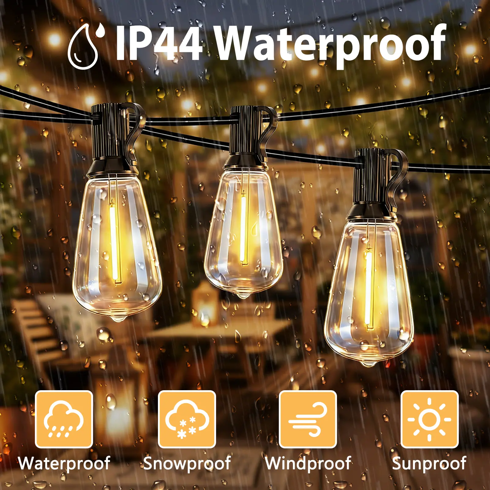Classic ST38 Edison-style warm white bulbs create a cozy, romantic glow that instantly elevates your space—perfect for daily patio vibes, weekend gatherings, and holiday decor.