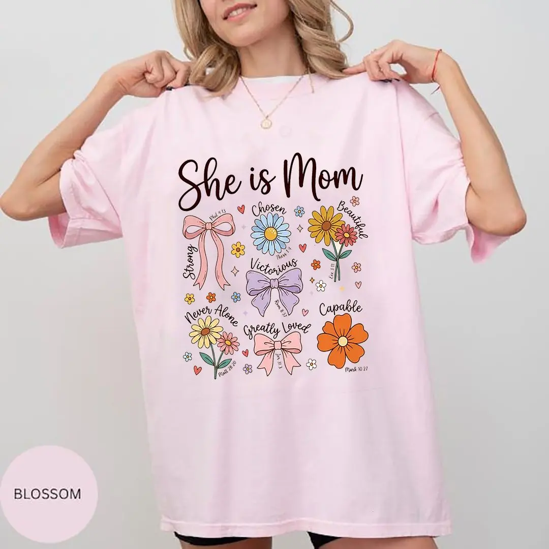 Faith Mom Wildflower Shirt, Bible Verse Mama Tee, Retro Coquette Mom Top, Mother’s Day Gift Shirt