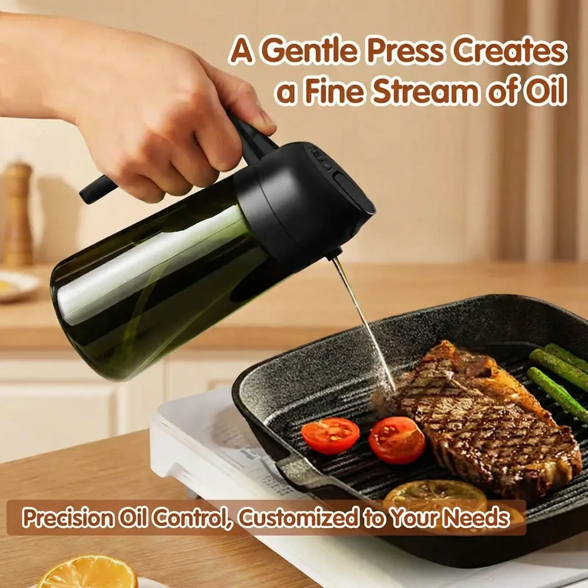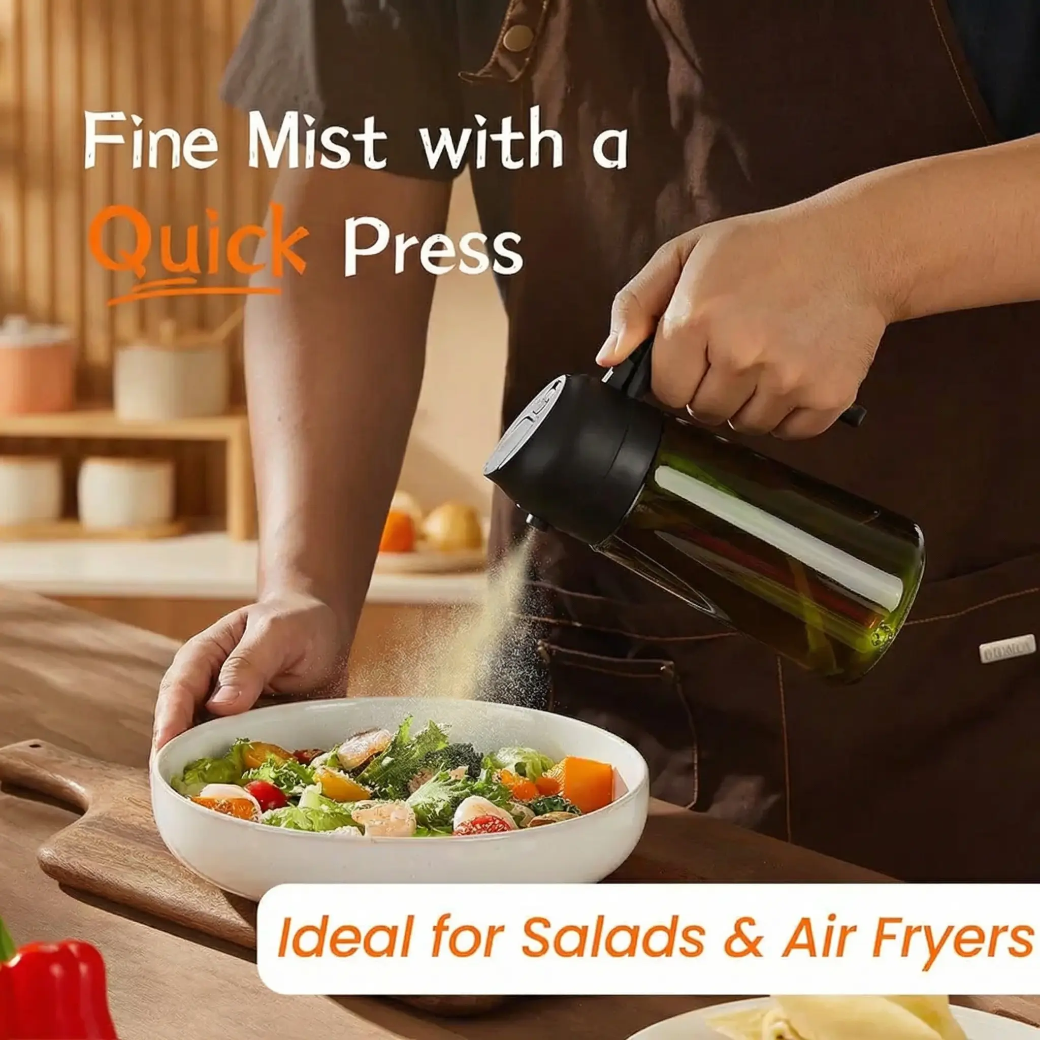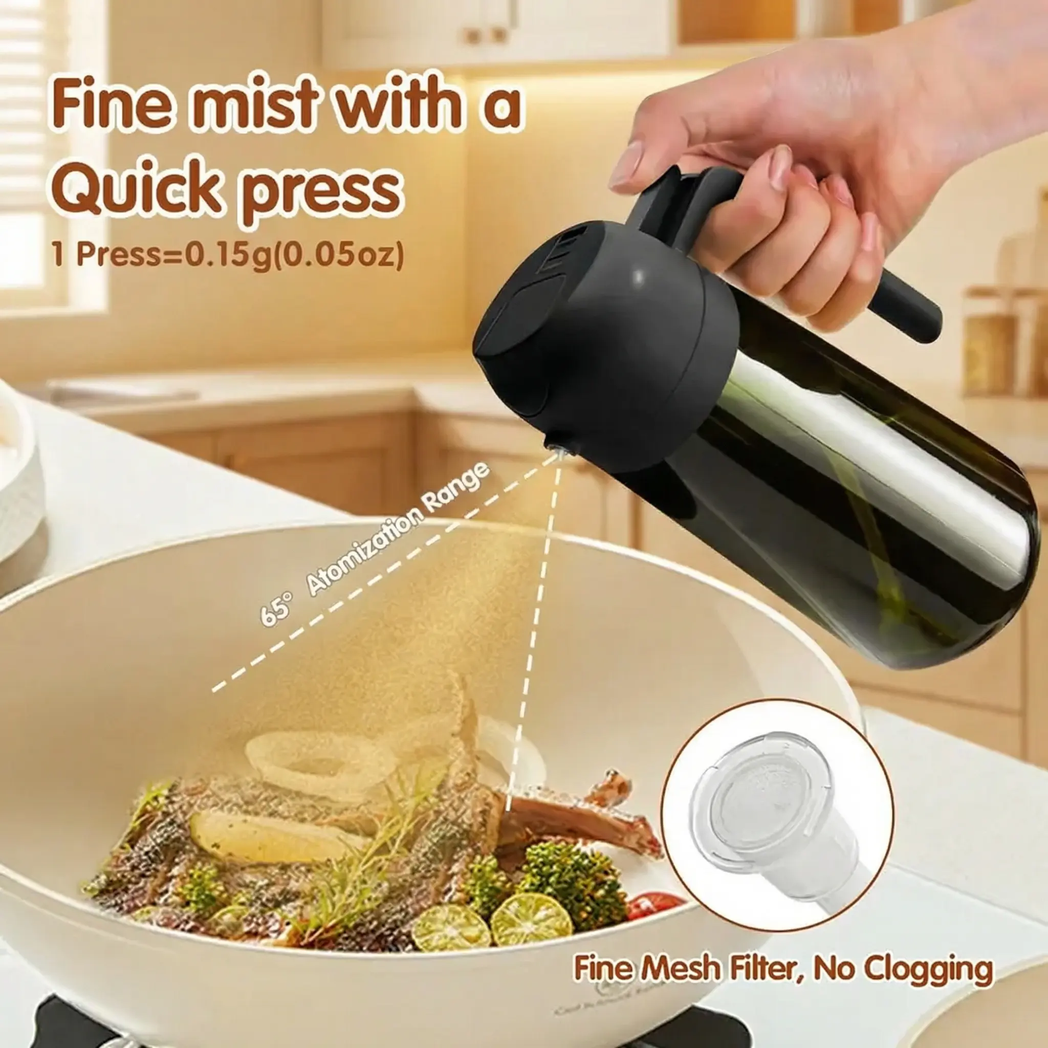 【Spray Function】: The innovative spray function can produce a fine and even oil mist, making it perfect for salads or cooking.