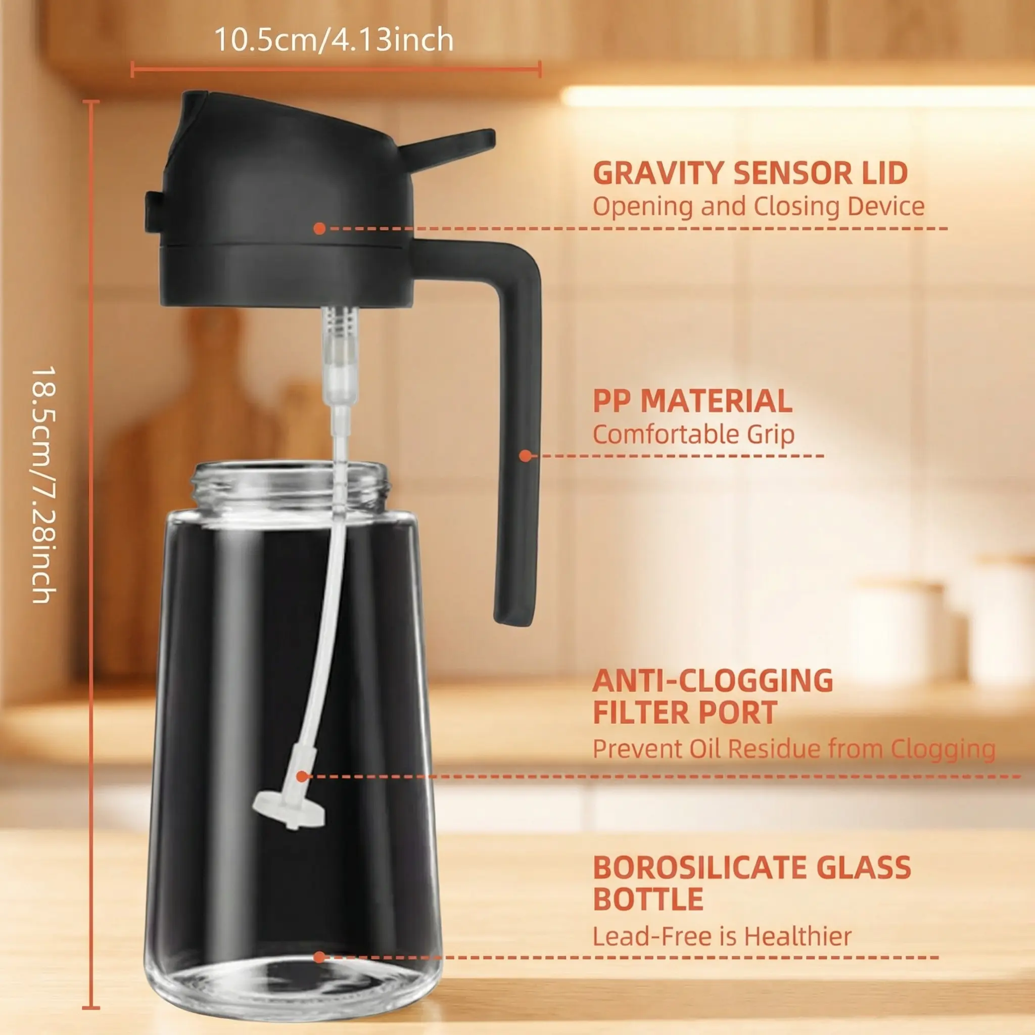 【470ml Capacity】: This oil bottle has a large capacity of 470ml, reducing the need for frequent oil additions during cooking.