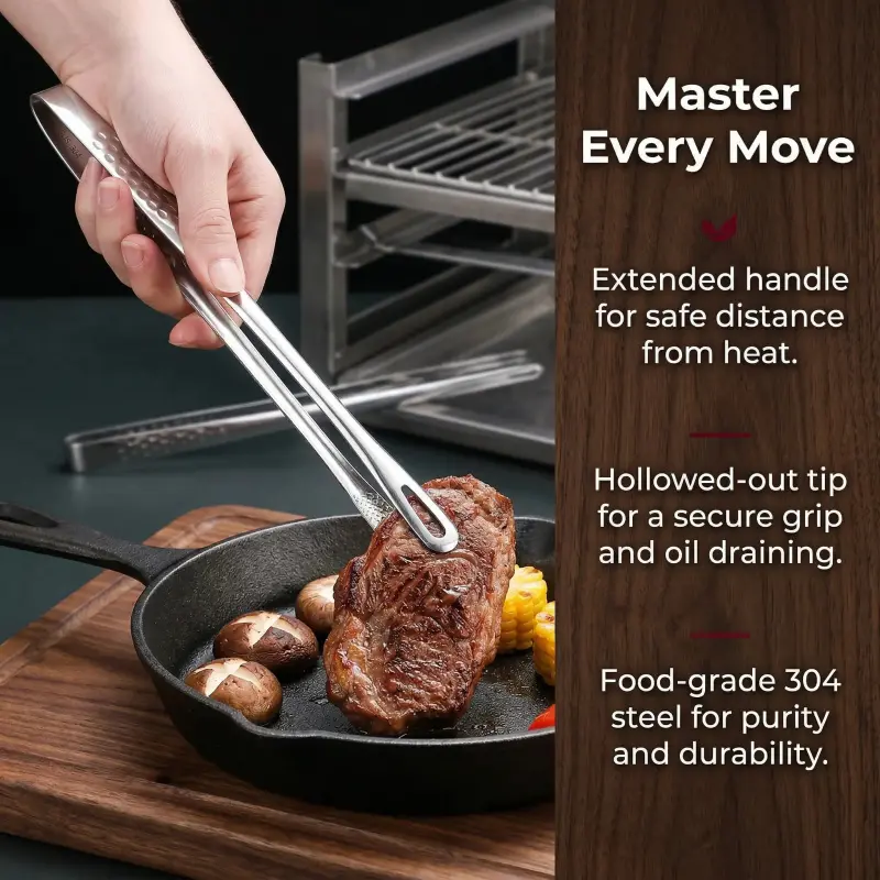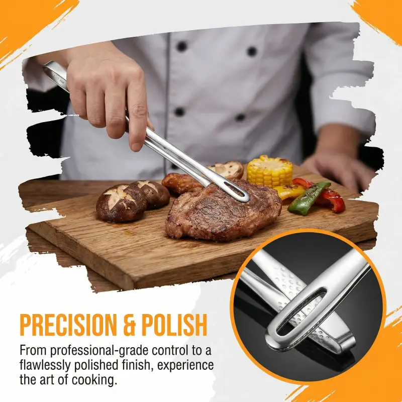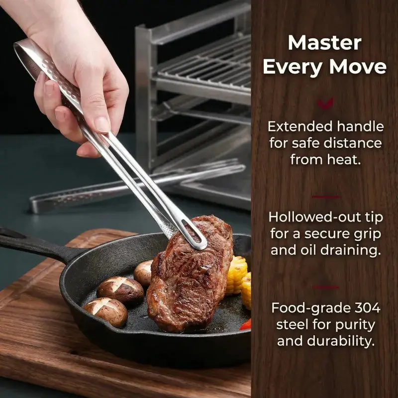 Kitchen Cooking Tongs, 1 Count Stainless Steel Multipurpose Barbecue Tongs, Fried Steak Clamp Spatula, Modern Hot Foods Kitchen Utensil, Kitchen Accessories-MM