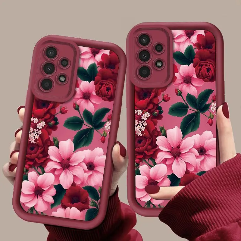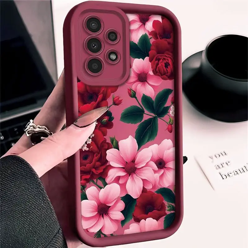 Elegant Red Floral Pattern Phone Case for Samsung Galaxy S26 S25 S24 S23 S22 S21 Fe Plus Ultra A13 A14 A15 A16 A17 A33 A34 A35 A36 A52 A53 A54 Note20, Shockproof And Durable, Stylish Design, TPU Protective