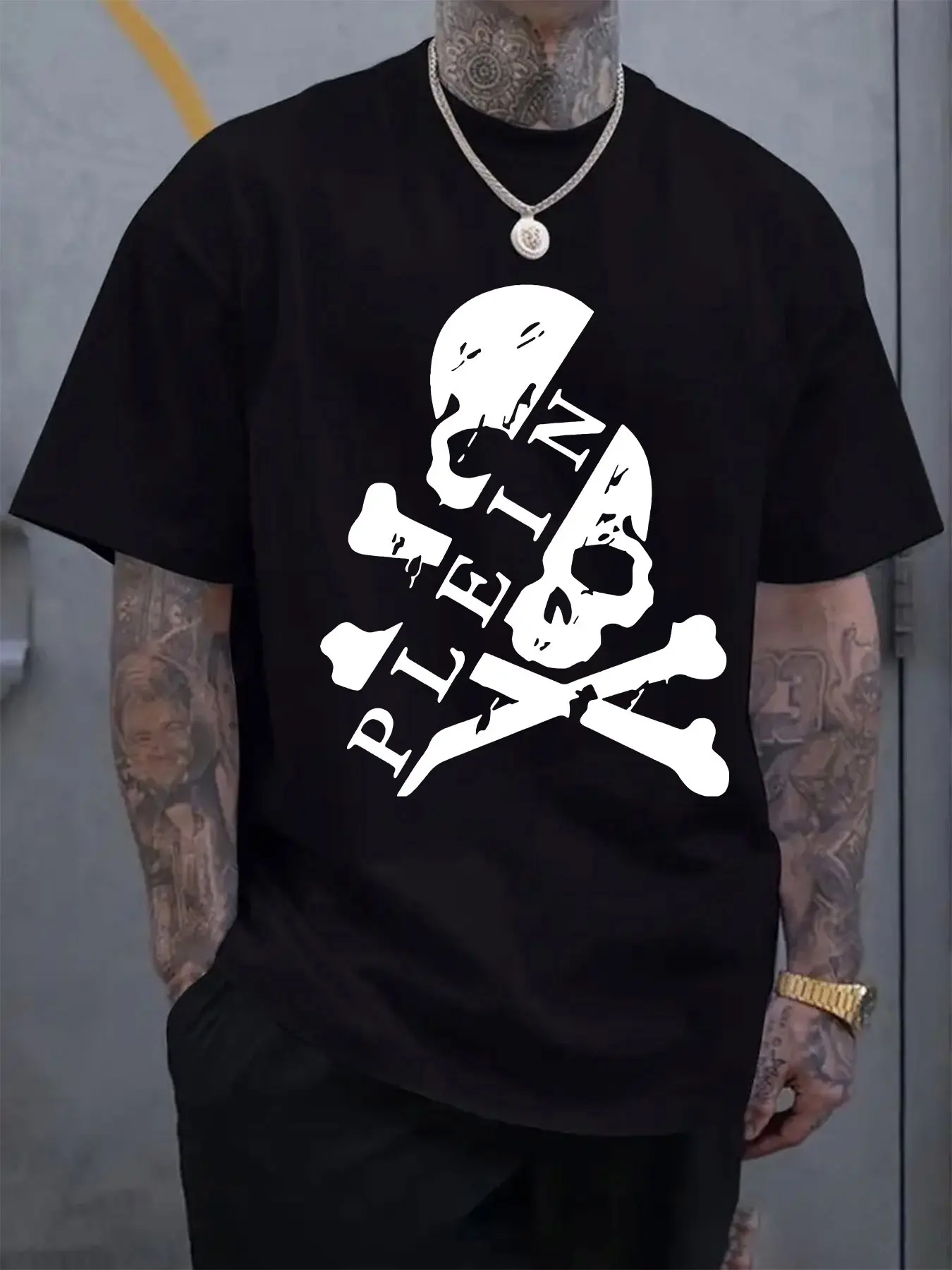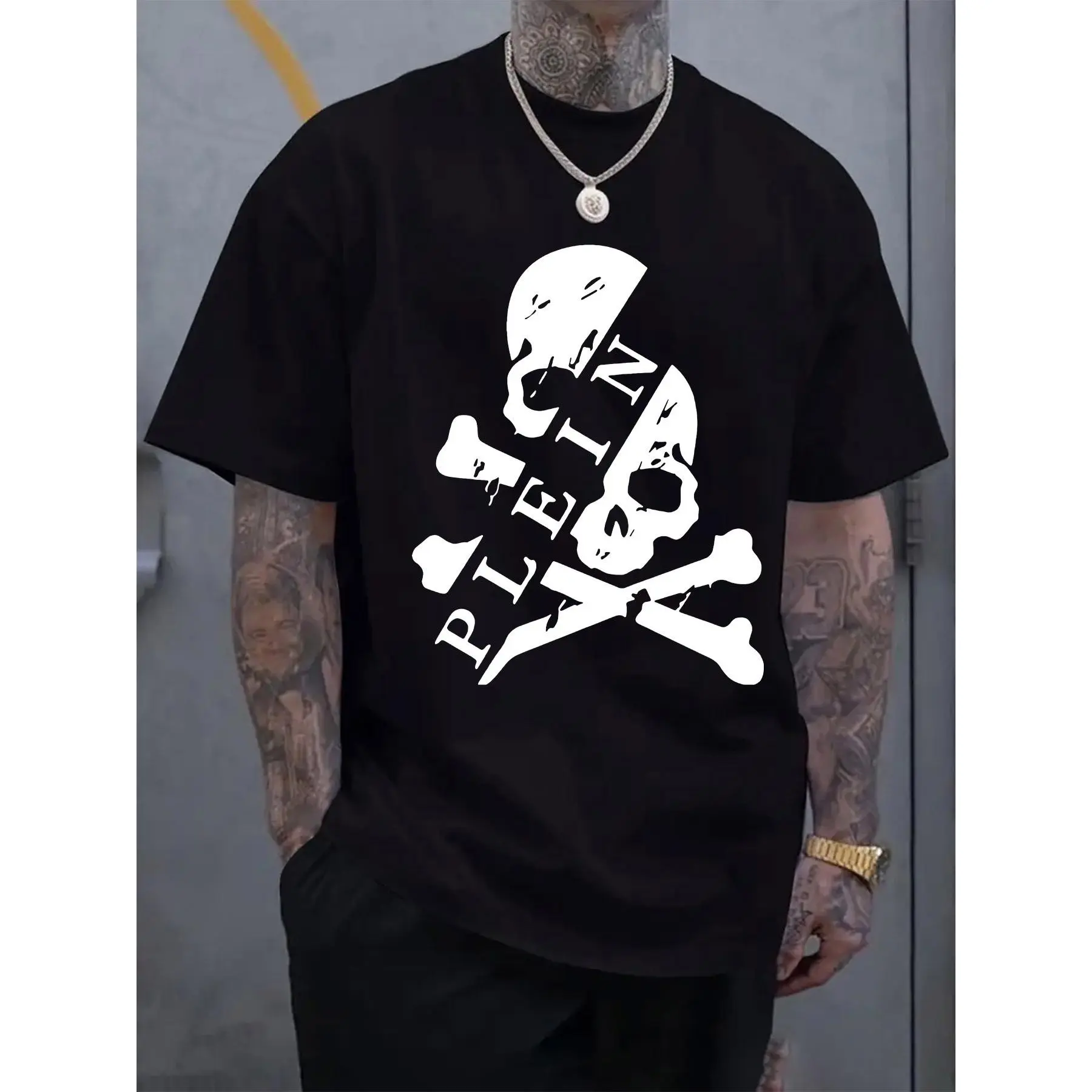 180g Heavyweight Men's T-Shirt Pure Cotton Breathable Abstract Skull & Crossbones Graphic Tee High-Street Style Outfit Gift for Guys S-5XL