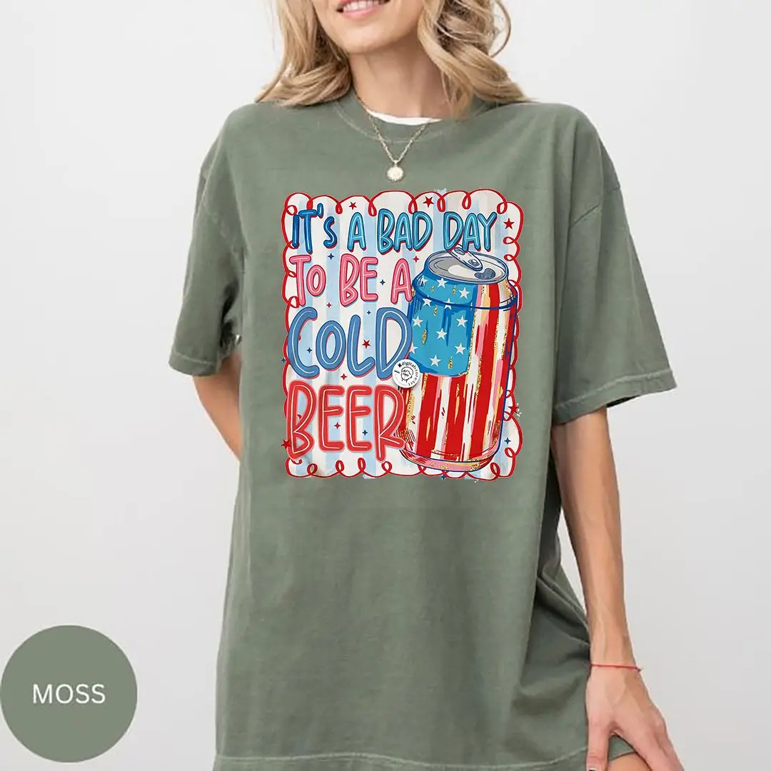 5. Bad Day To Be a Cold Beer Shirt, Comfort Colors 1717 & Gildan 5000, Funny 4th of July Tee, American Beer BBQ Party Shirt, Independence Day Patriotic Gift.