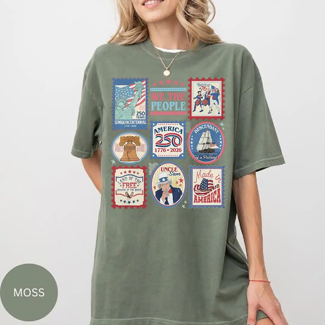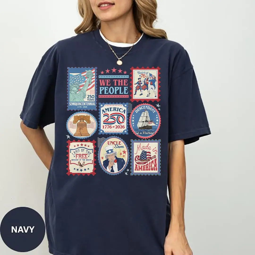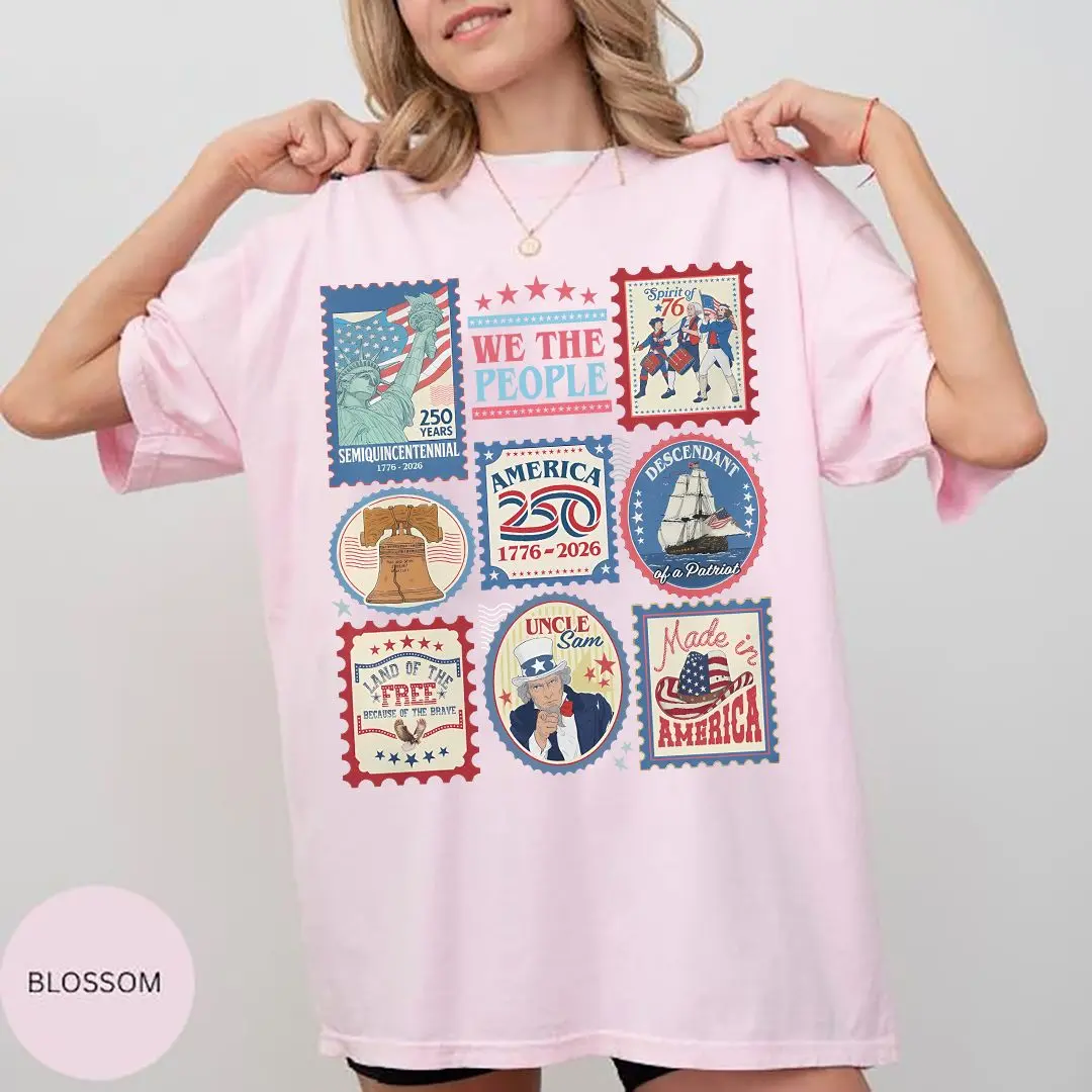 5. USA 250th Anniversary Stamps Shirt, Comfort Colors 1717 & Gildan 5000, America 1776 2026 Tee, Patriotic 4th of July Shirt, Vintage Independence Gift.