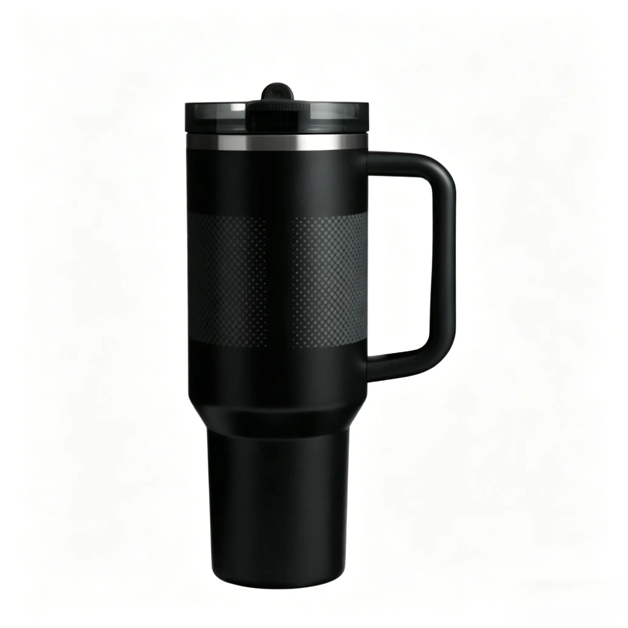 Black Giant Leak-Proof Stainless Steel Tumbler with Removable Foldable Straw Lid, Insulated for Hot & Cold,40oz