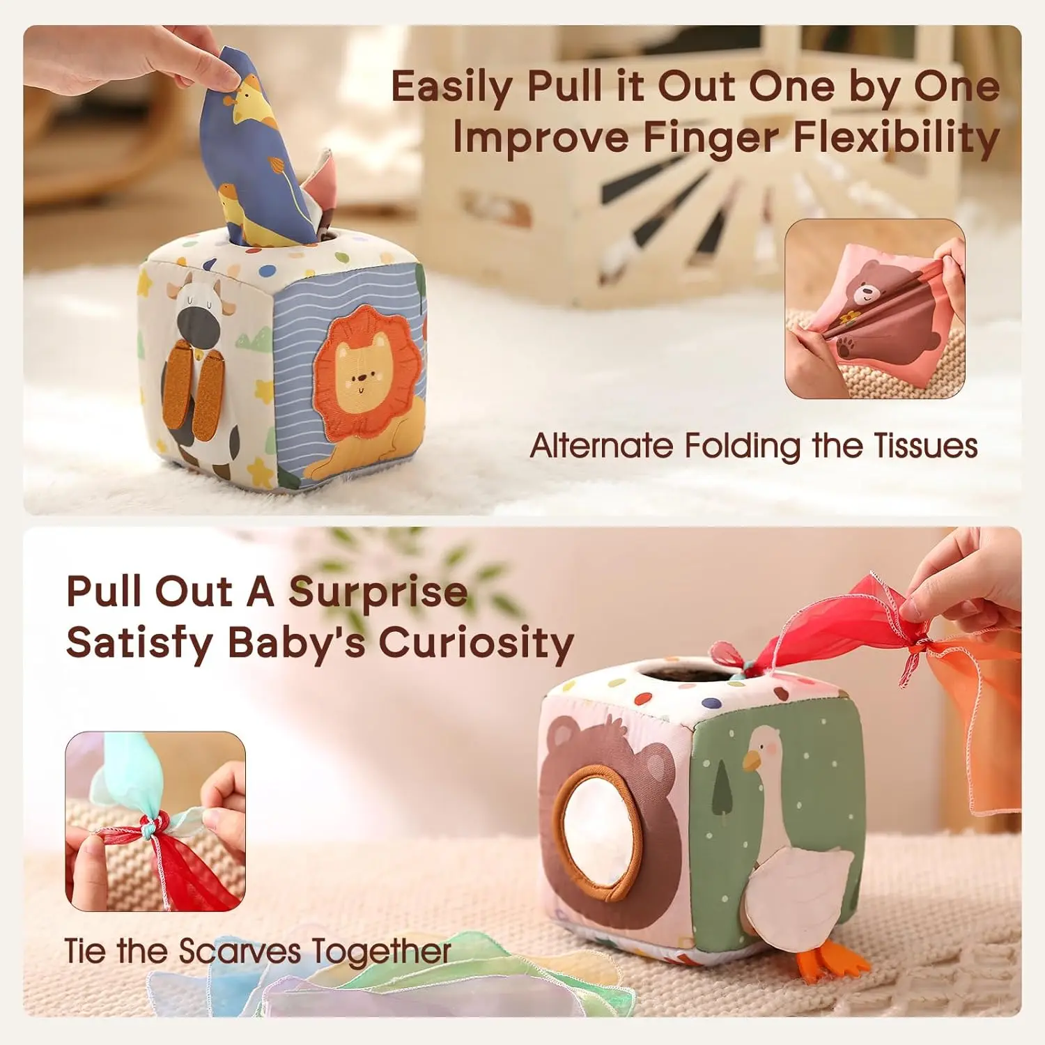 Youuys Baby Tissue Box Toy for Babies 6-12 Months, Montessori Sensory Toys for 1 Year Old Boy, Infant Toy with Crinkle Tissues & Fine Motor, for 6 9 12 18 Months Old Kids 1st Birthday : Health & Household