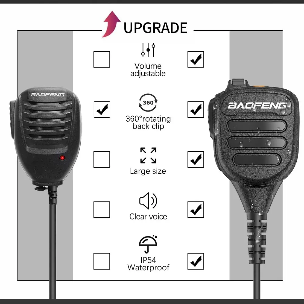 [Baofeng universal walkie talkie accessories]Microphone speaker: Distance between two pins: 11mm.Compatible models: BAOFENG AR-152 UV-5R,UV-5RH,UV-82,BF-888S,BF-F8+,UV-S9 PLUS,BF-F9 V2+,GT-3TP, Kenwood, Lunton, PUXING, WEIERWEI, Wouxun, etc.