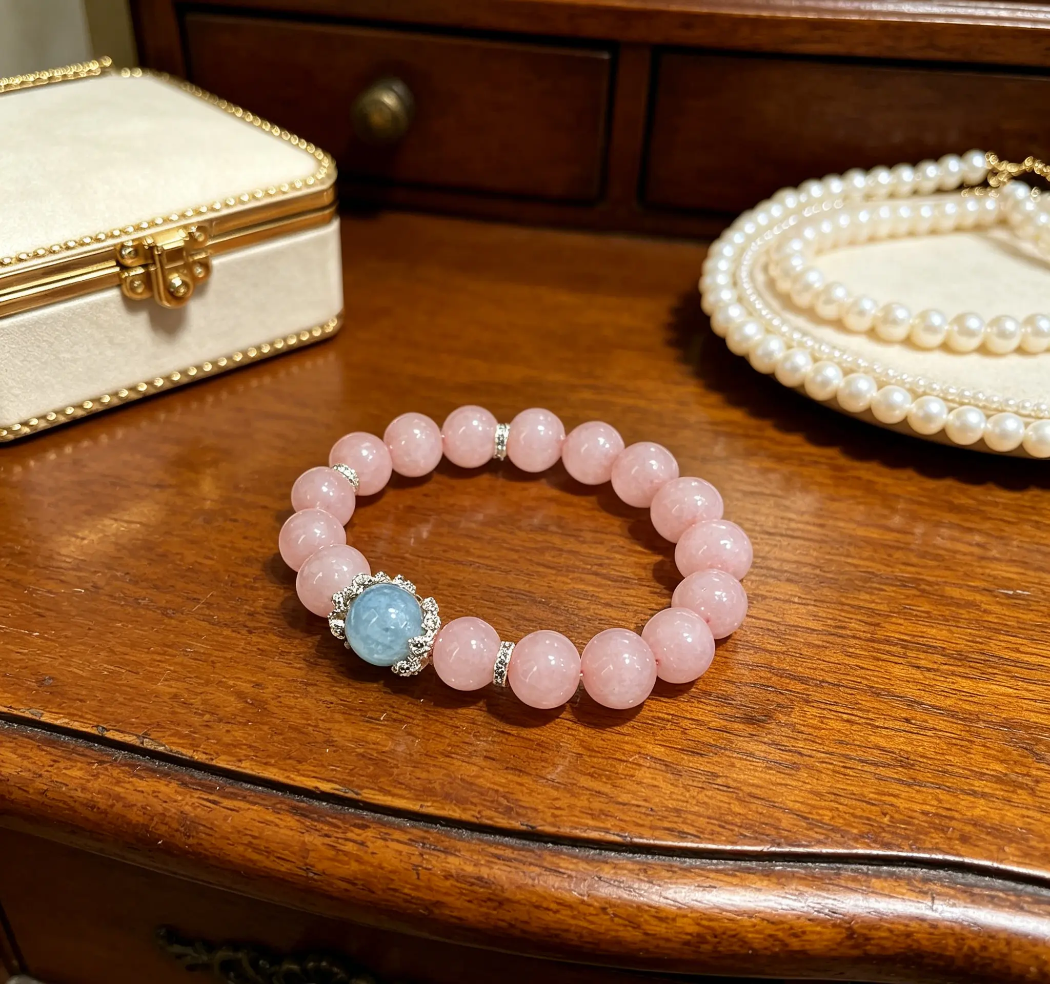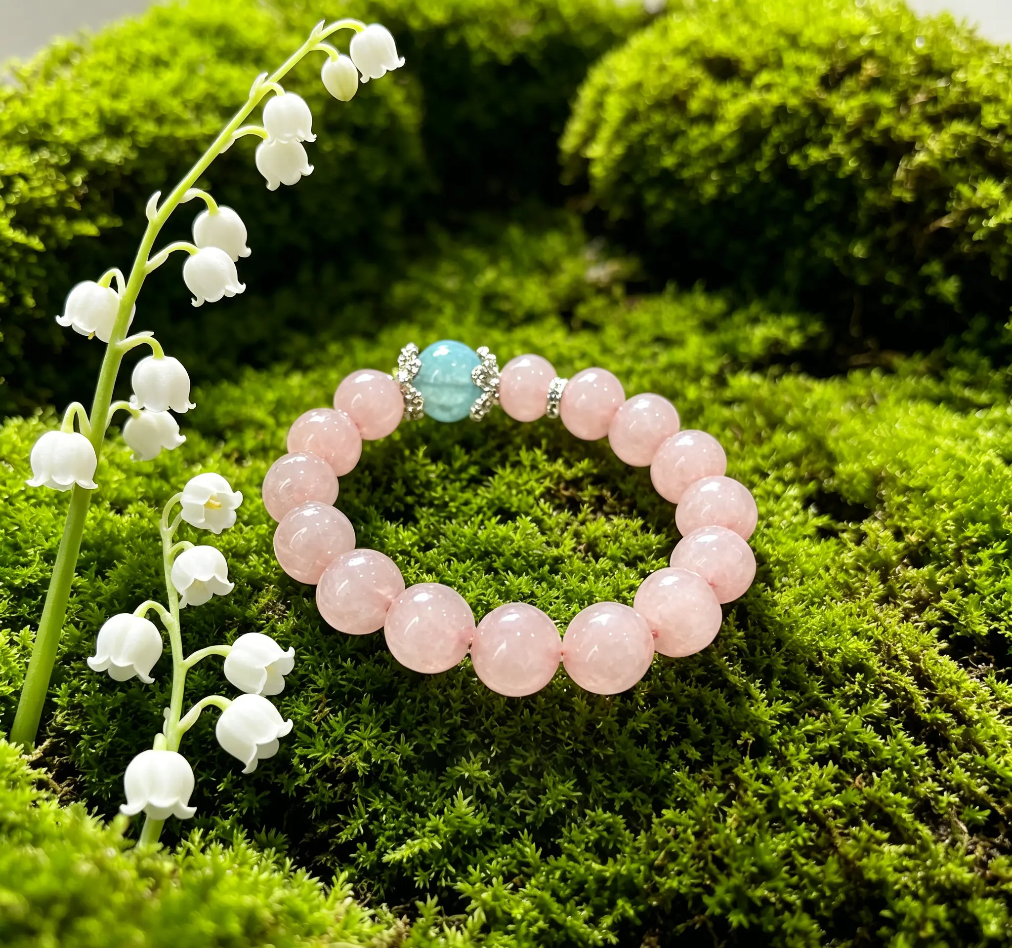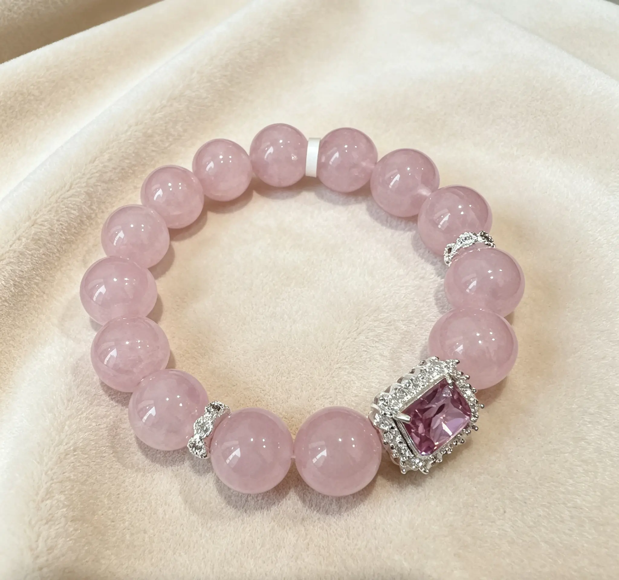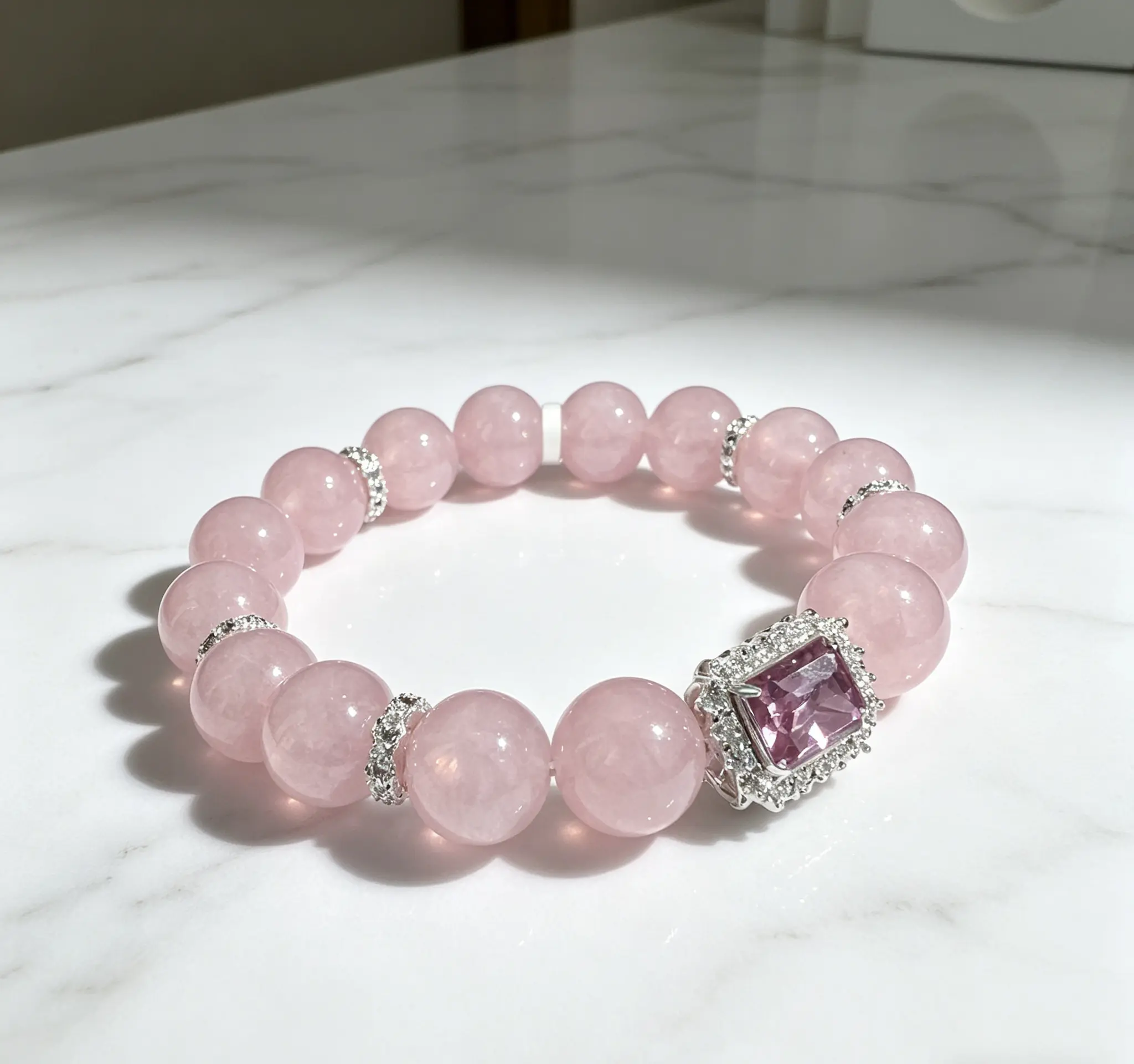 Lavish Rose Quartz Bracelet with Diamond Accents, Handmade Spiritual Healing Jewelry, Elegant Energy Wrist Accessory for Daily Wear, Dinner Party & Special Occasions