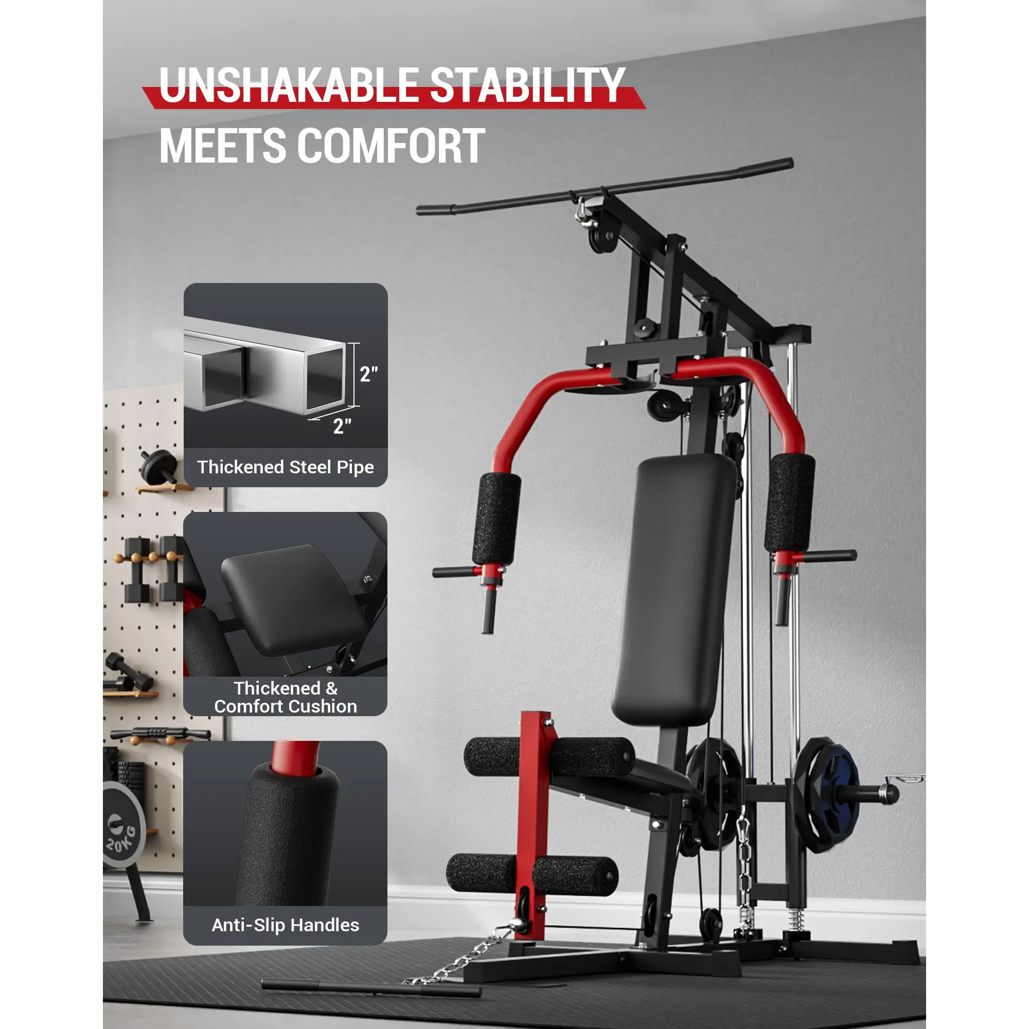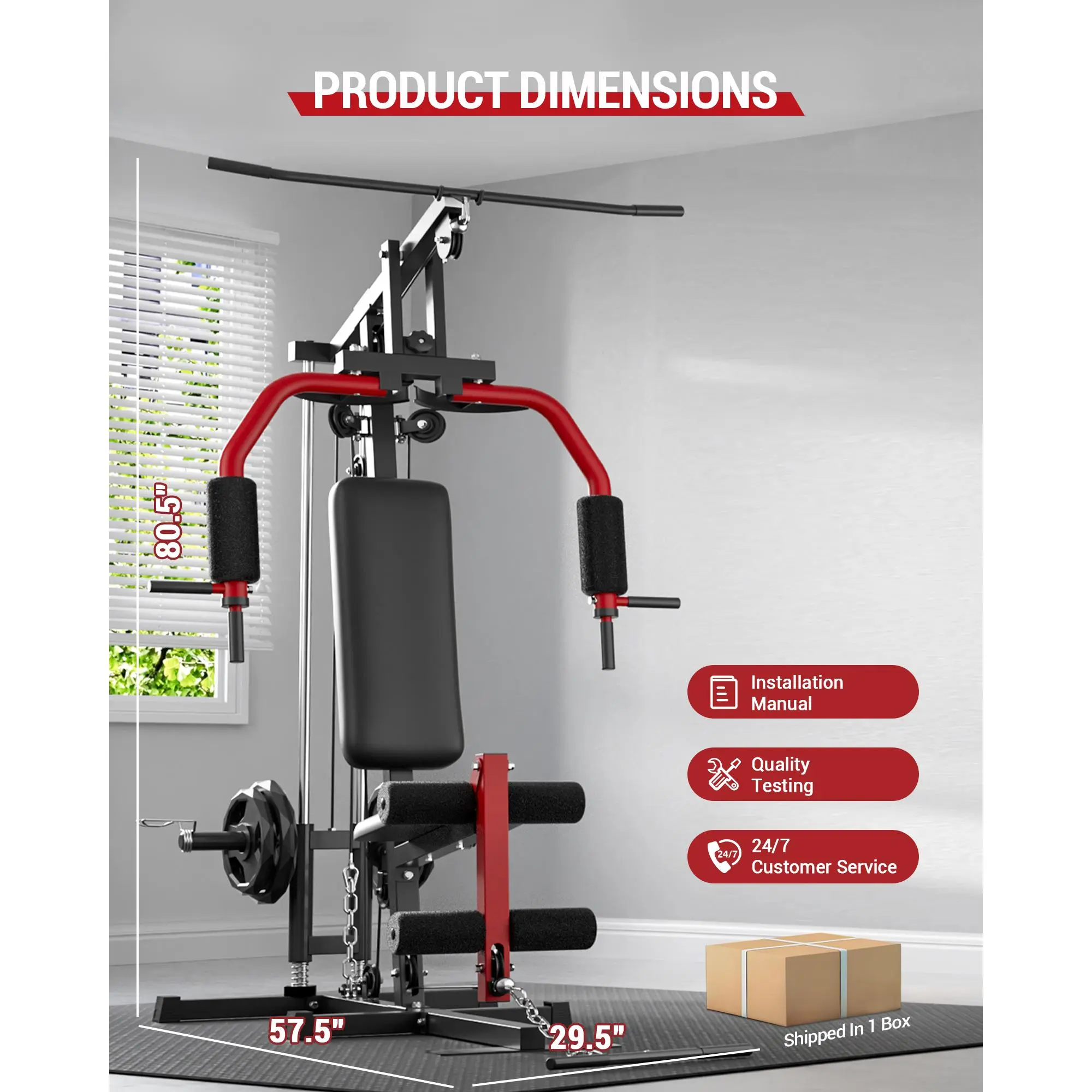 ·【Comfortable and Stable Home Gym 】Weight machine with non-slip foot support. ergonomic padded seat. and foam-covered handles ensure safety and comfort through every workout. This home gym system is made with heavy-duty steel tubing that hold weight in place during workouts.