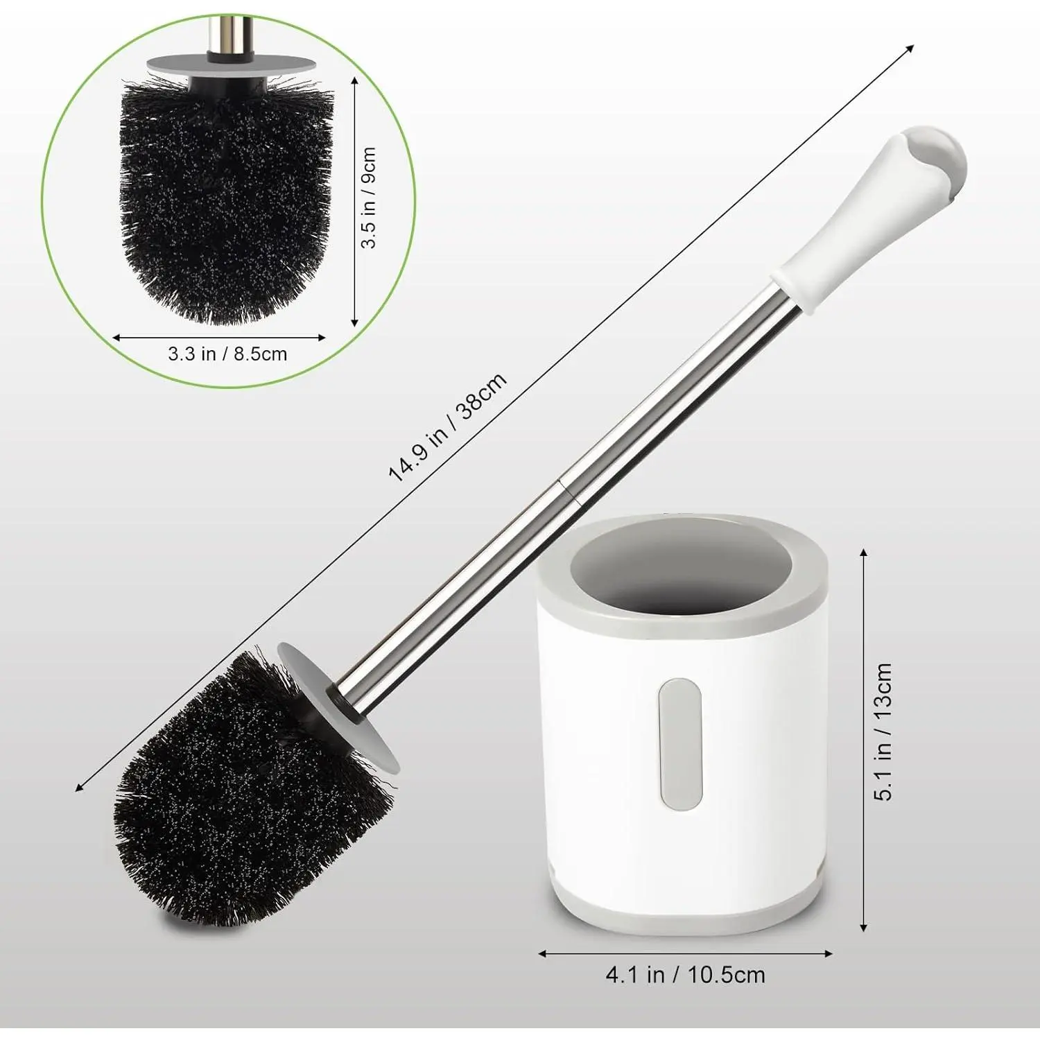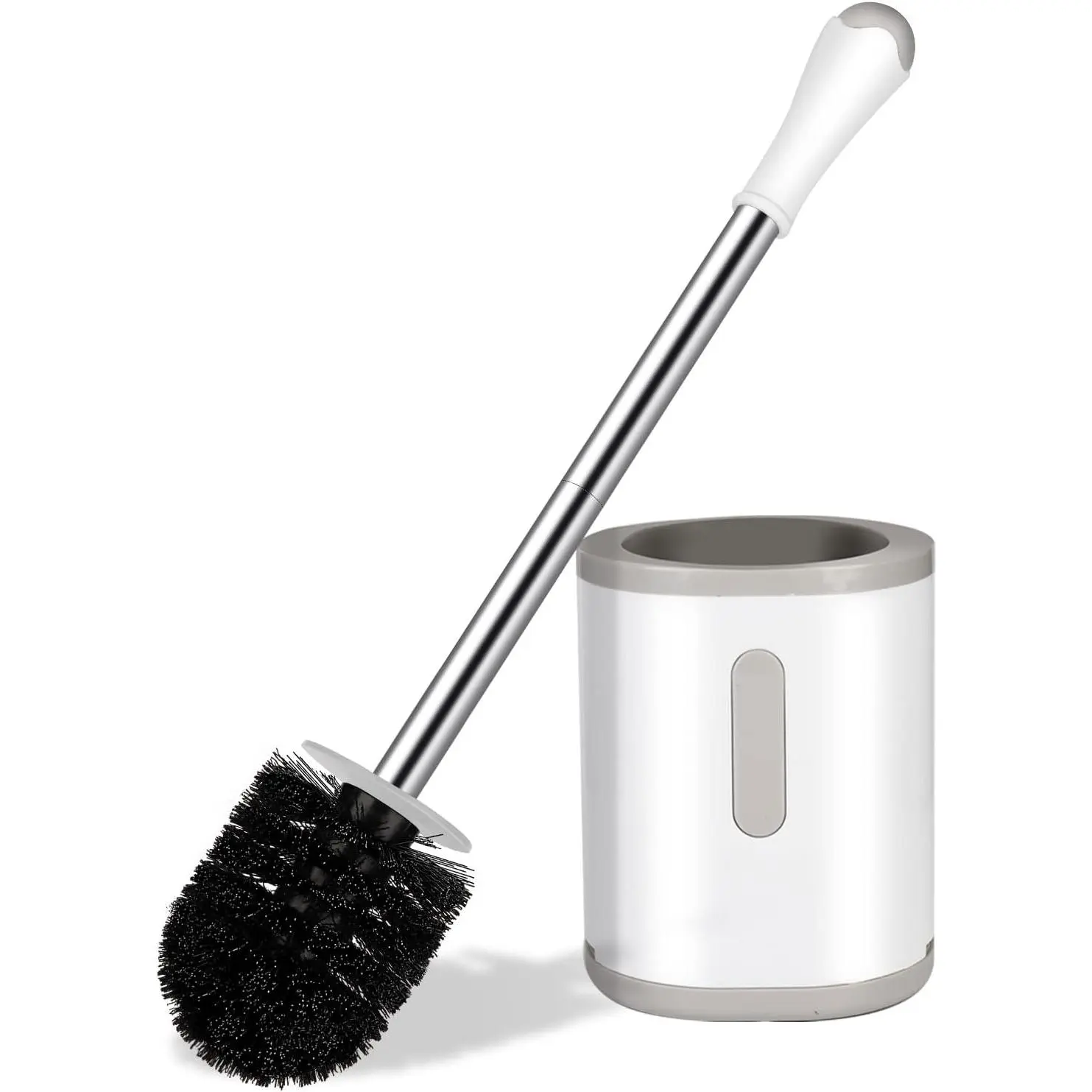 Compact Toilet Brush & Holder Set, Stainless Steel Handle Nylon Bristles, Space Saving Deep Cleaning Drip-Proof Easy Assembly, White & Grey