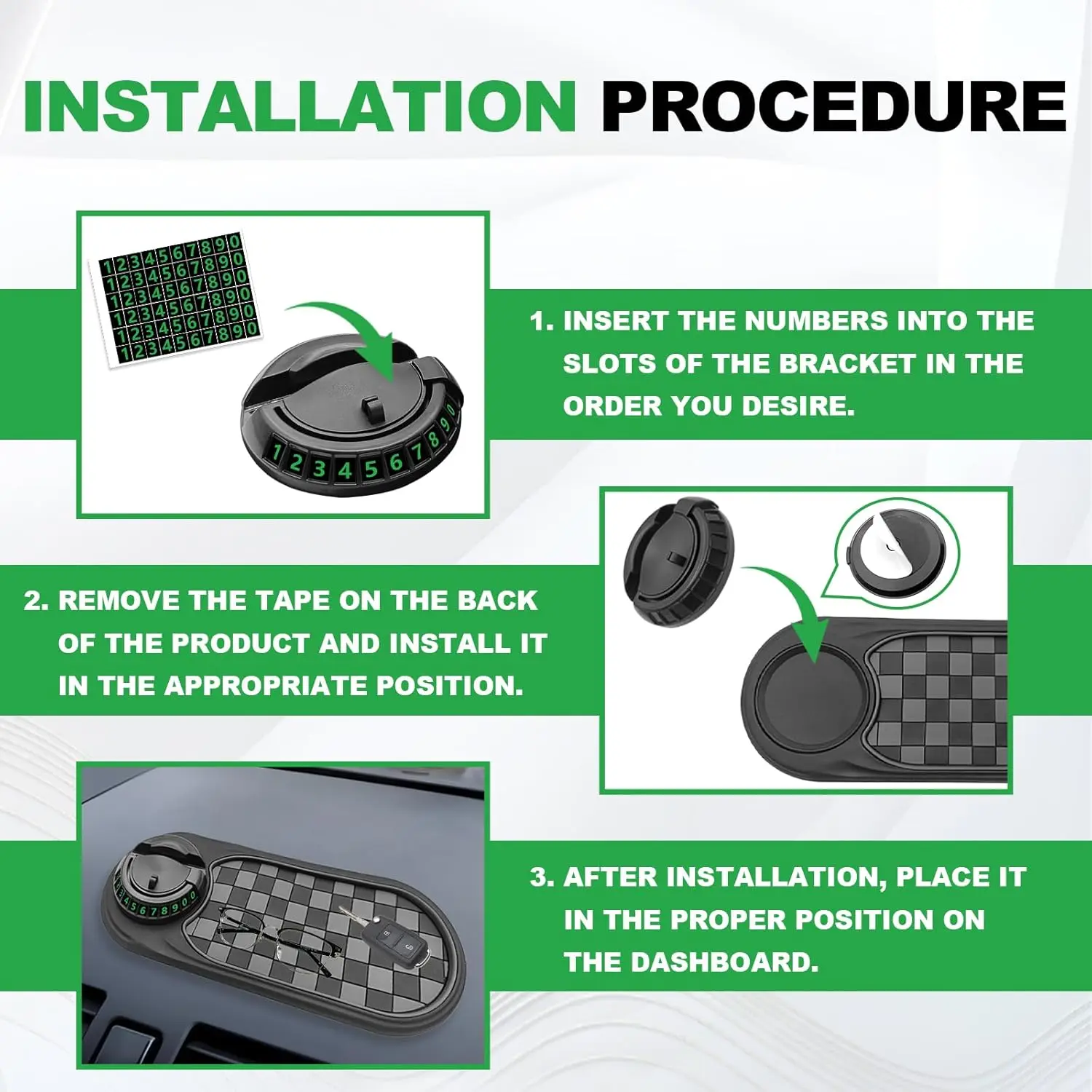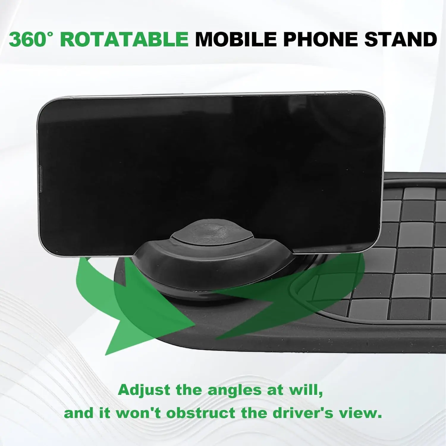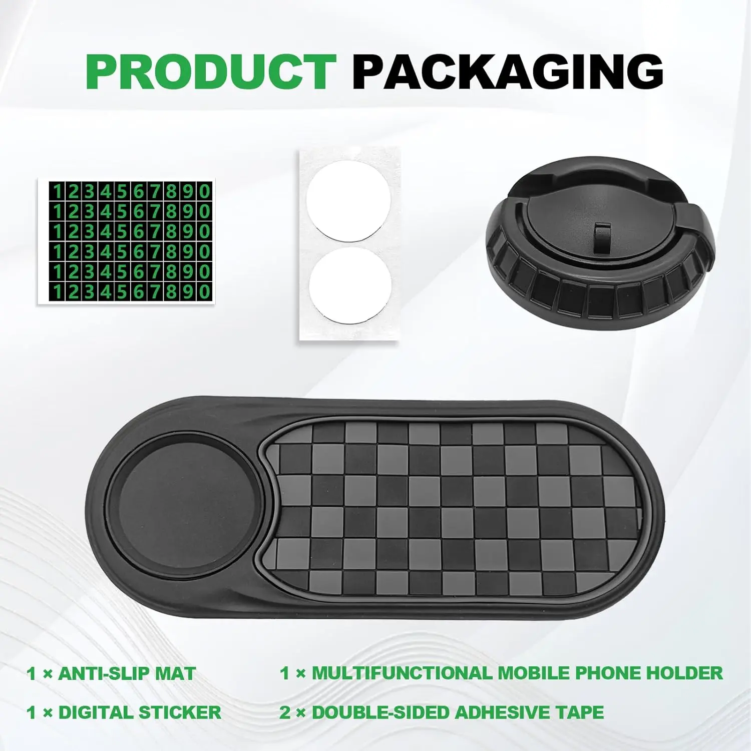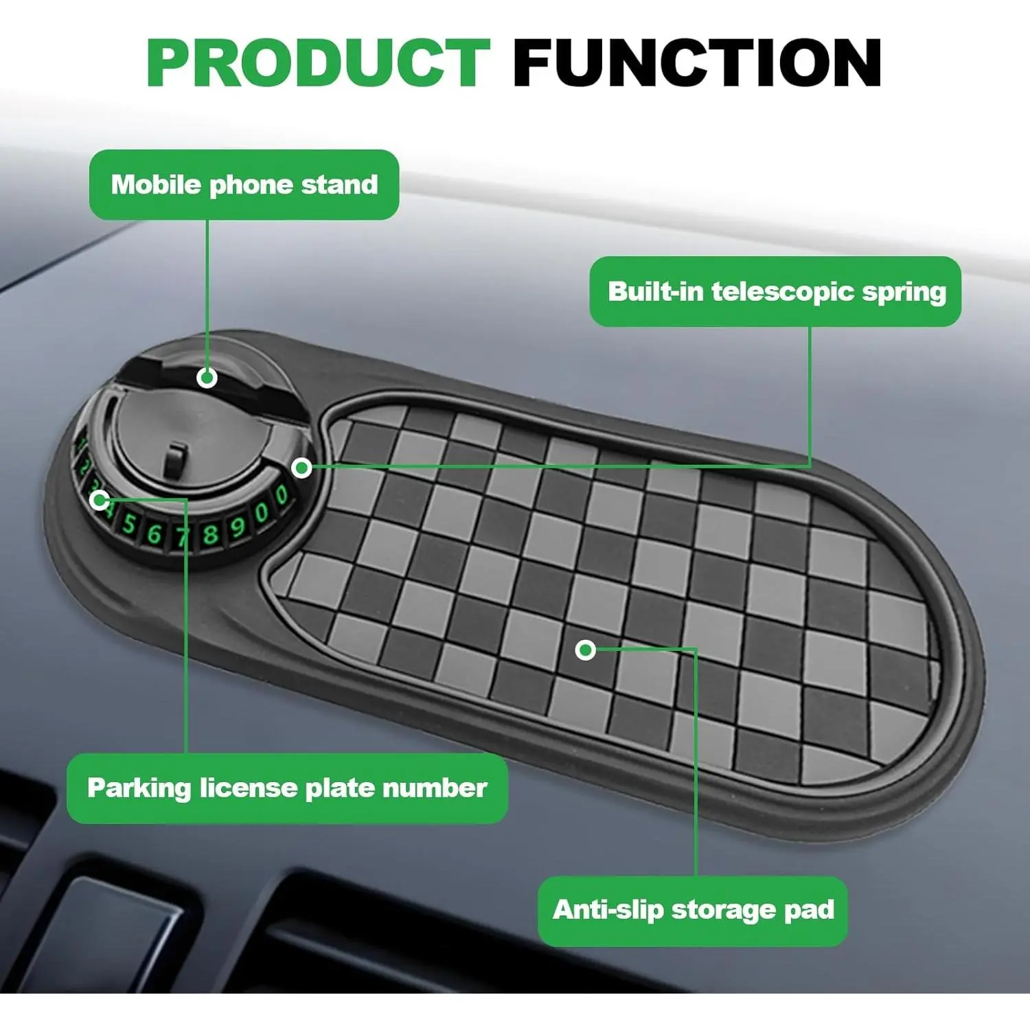 JOKG New Multifunctional Anti-Slip Rubber Pad, 4-in-1 Car Universal Dashboard Pad, 360° Rotatable Car Non-Slip Phone Pad w/Temporary Parking Number, Place Sunglasses, Keys, etc (Black & Gery)