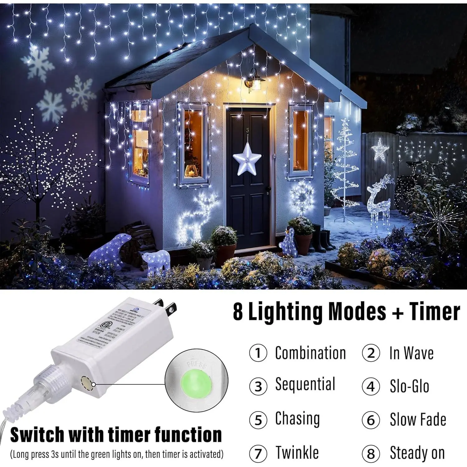 Waterproof and Sturdy: Constructed with high-strength materials, these Christmas icicle lights and the plug are waterproof, designed to withstand all weather conditions year-round for long-lasting use in any indoor and outdoor setting