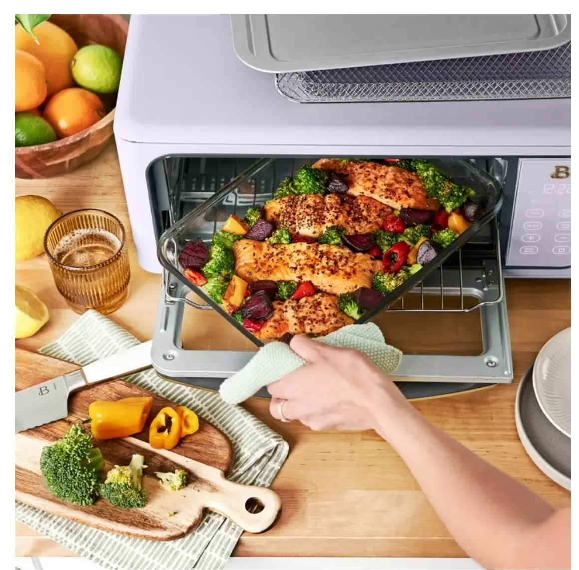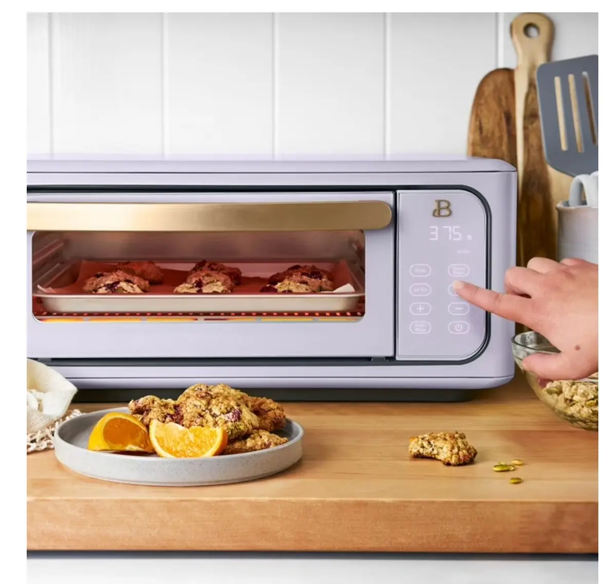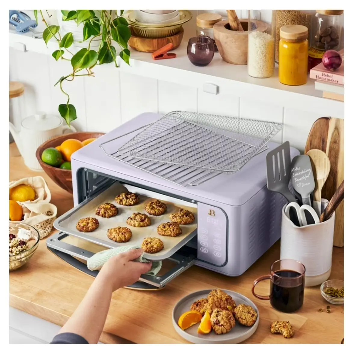 ·10 preset cooking functions: Toast, Bagel, Air fry, Broil, Bake, Pizza, Reheat, Cookies, Slow cook, Dehydrate