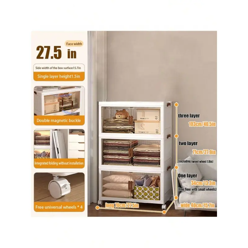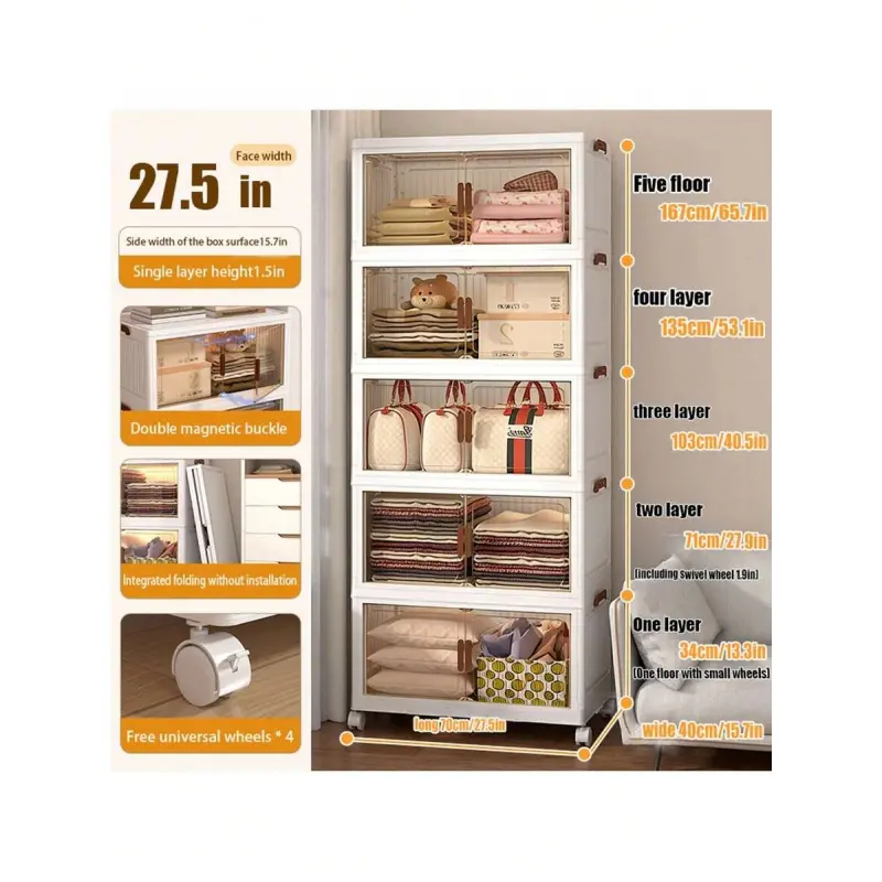 70cm4/5layers Oversized Locker With Wheeled Doors - Waterproof Collapsible Locker For Bedroom Storage Of Clutter, Documents, Toys, Snacks And Plastic Drawers For Storage, Multi-Layer Locker