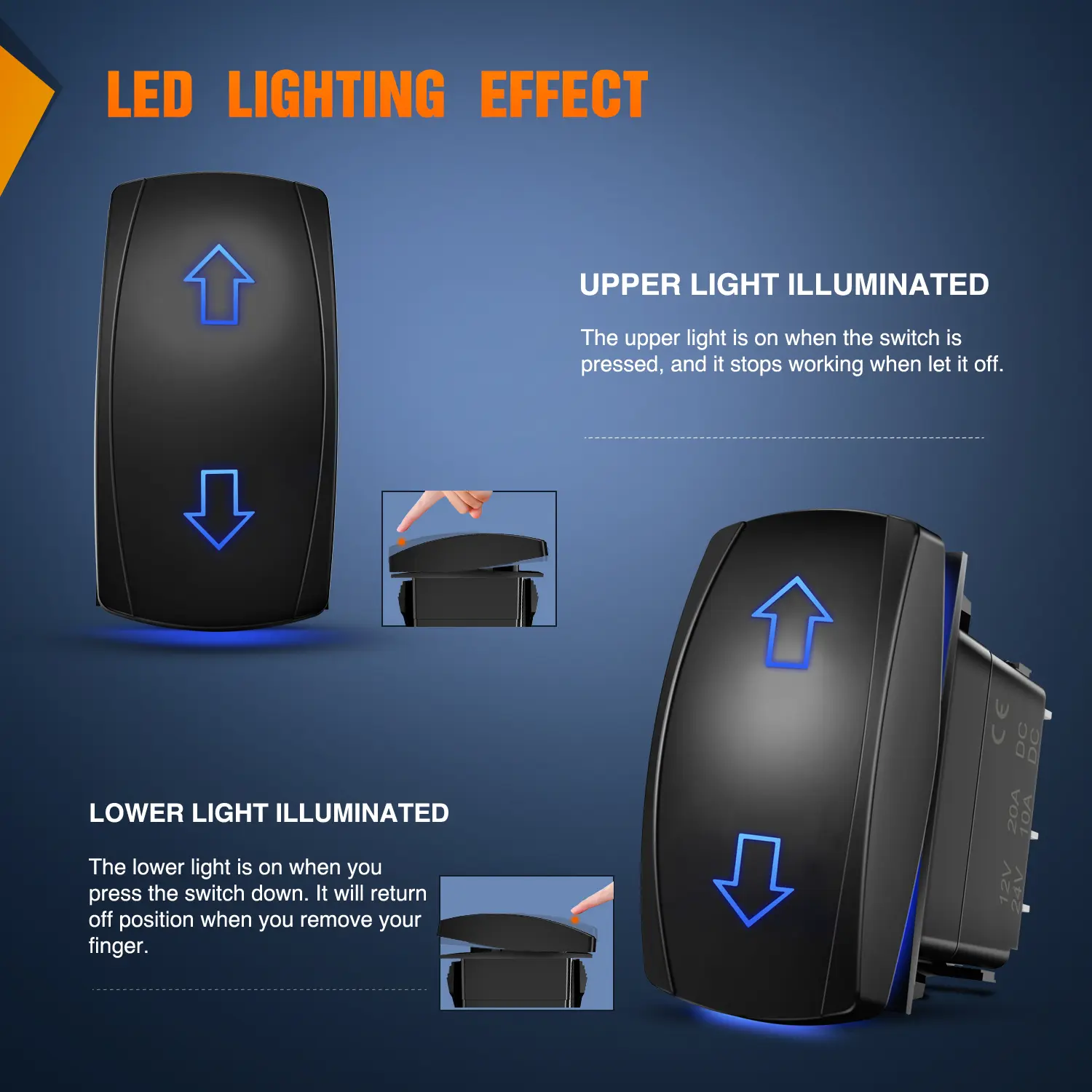 Made of ABS and PC of premium quality, the switch is impact and heat resistant. DPDT design, this on off on switch can control 2 loads.