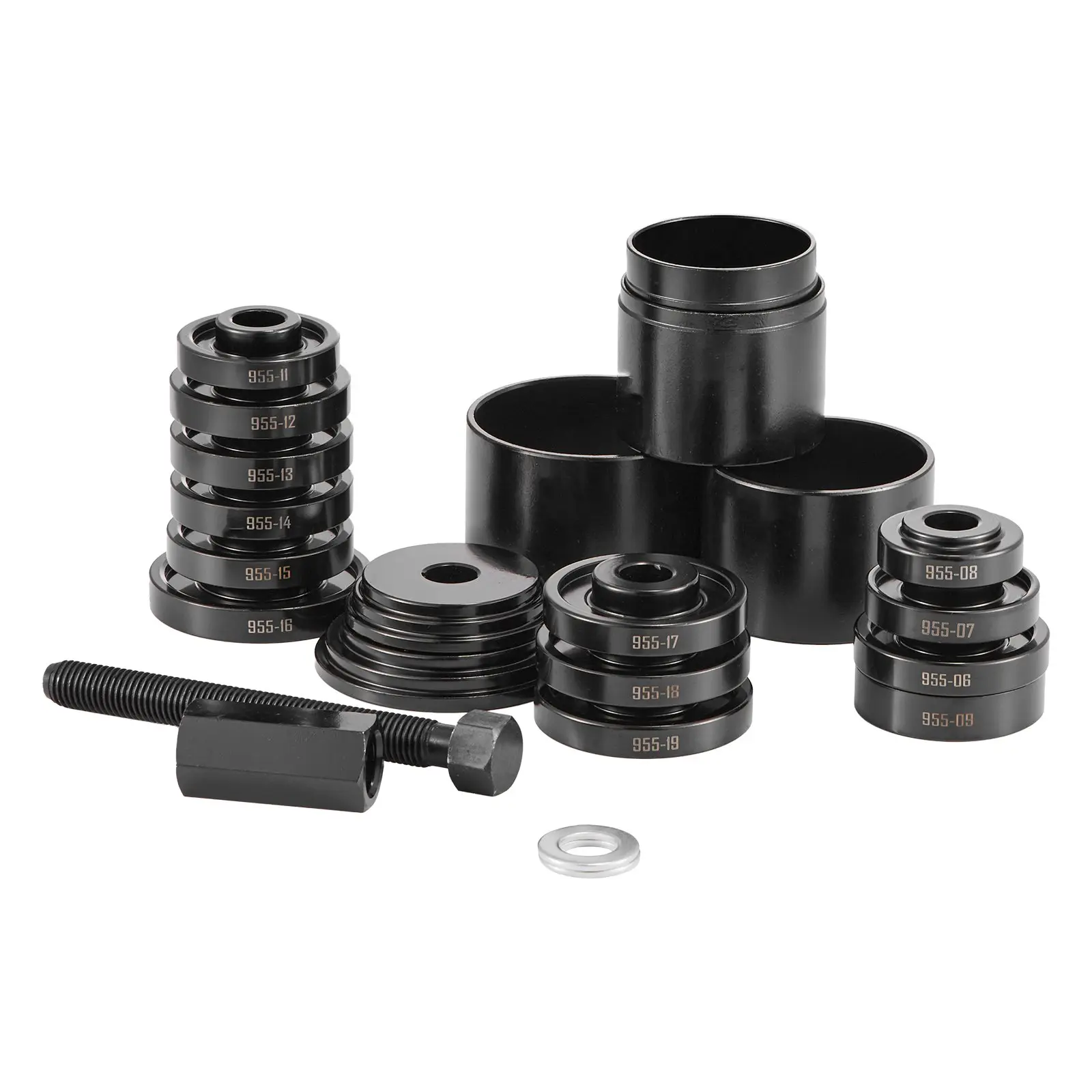 Our 23-piece bearing puller kit features universal compatibility with 13 bushings covering common bearing sizes from 2.2 in to 3.5 in, making it suitable for a wide range of front-wheel drive cars and light trucks.
