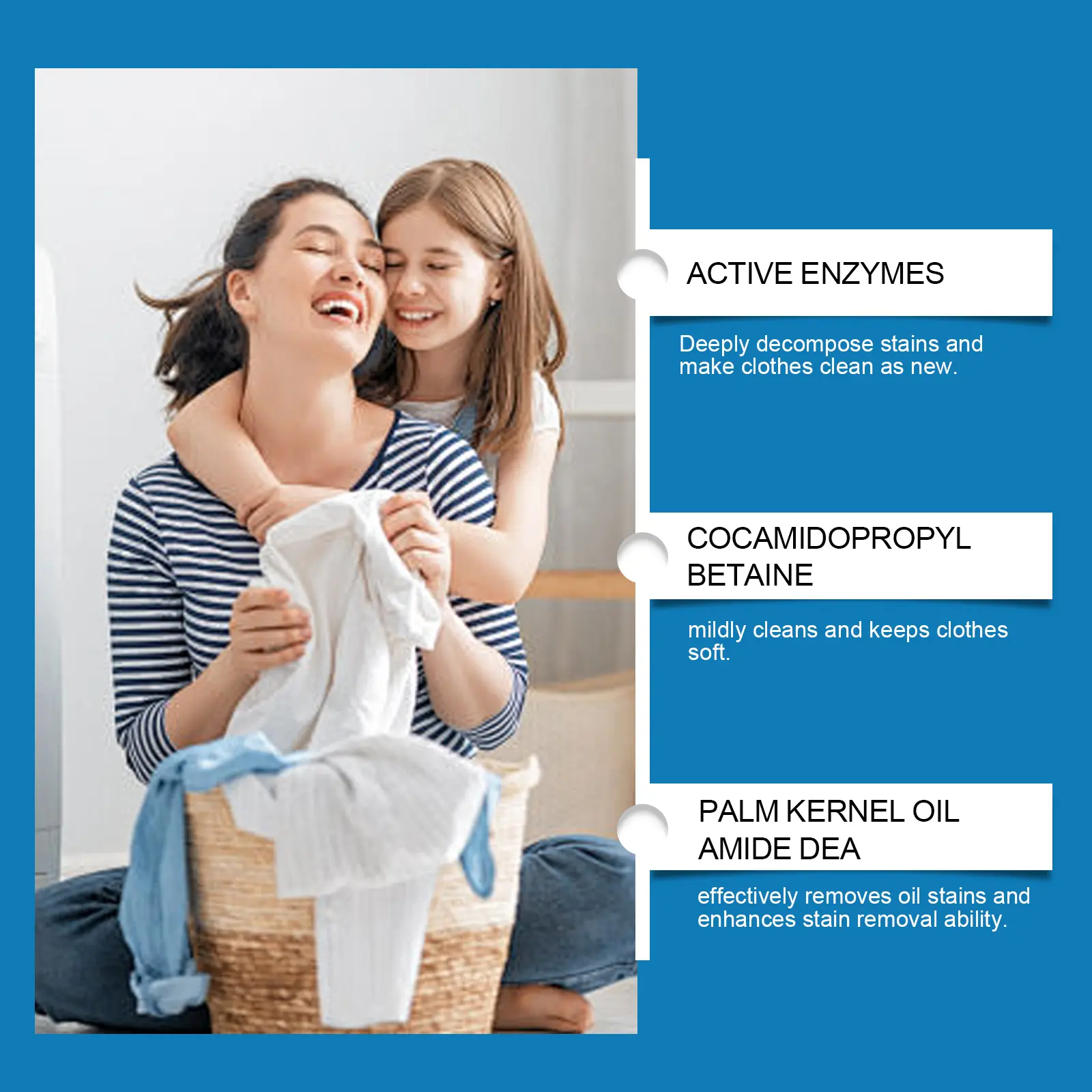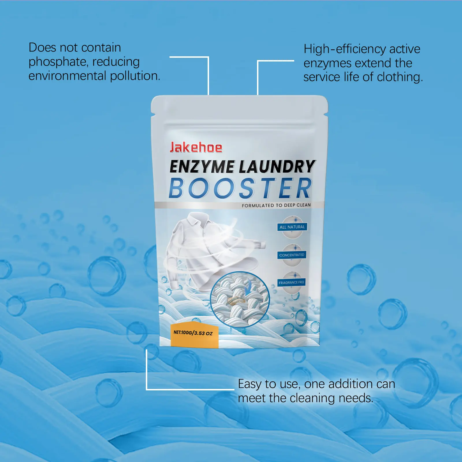 Powerful Fabric Stain Remover: Our enzyme-based laundry additive powder is specially formulated to remove stains from dirty clothes, making it particularly effective against odors, grease, underarm sweat stains, blood stains, and oil stains!