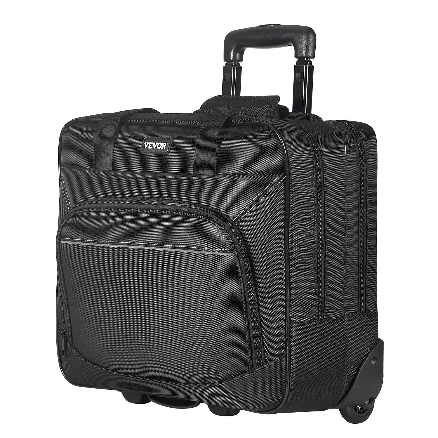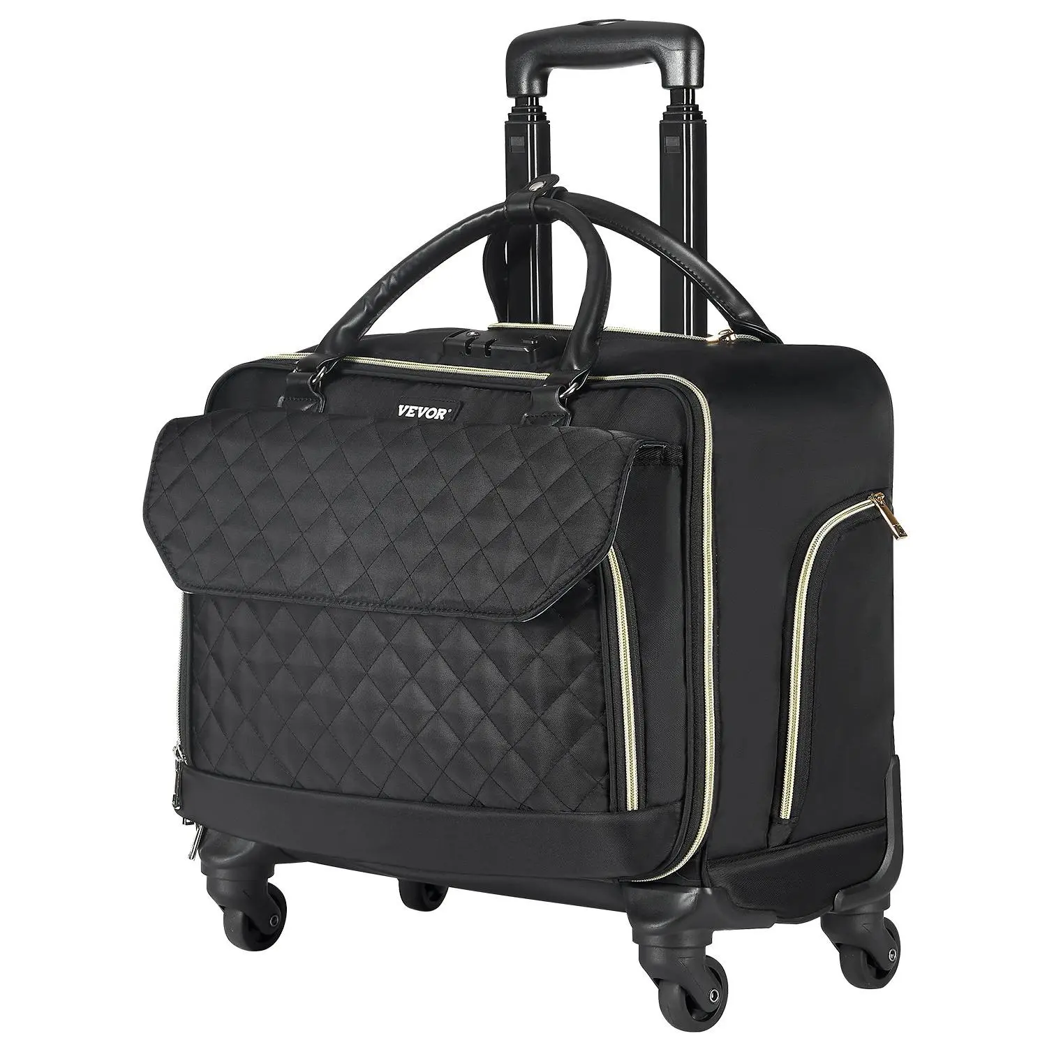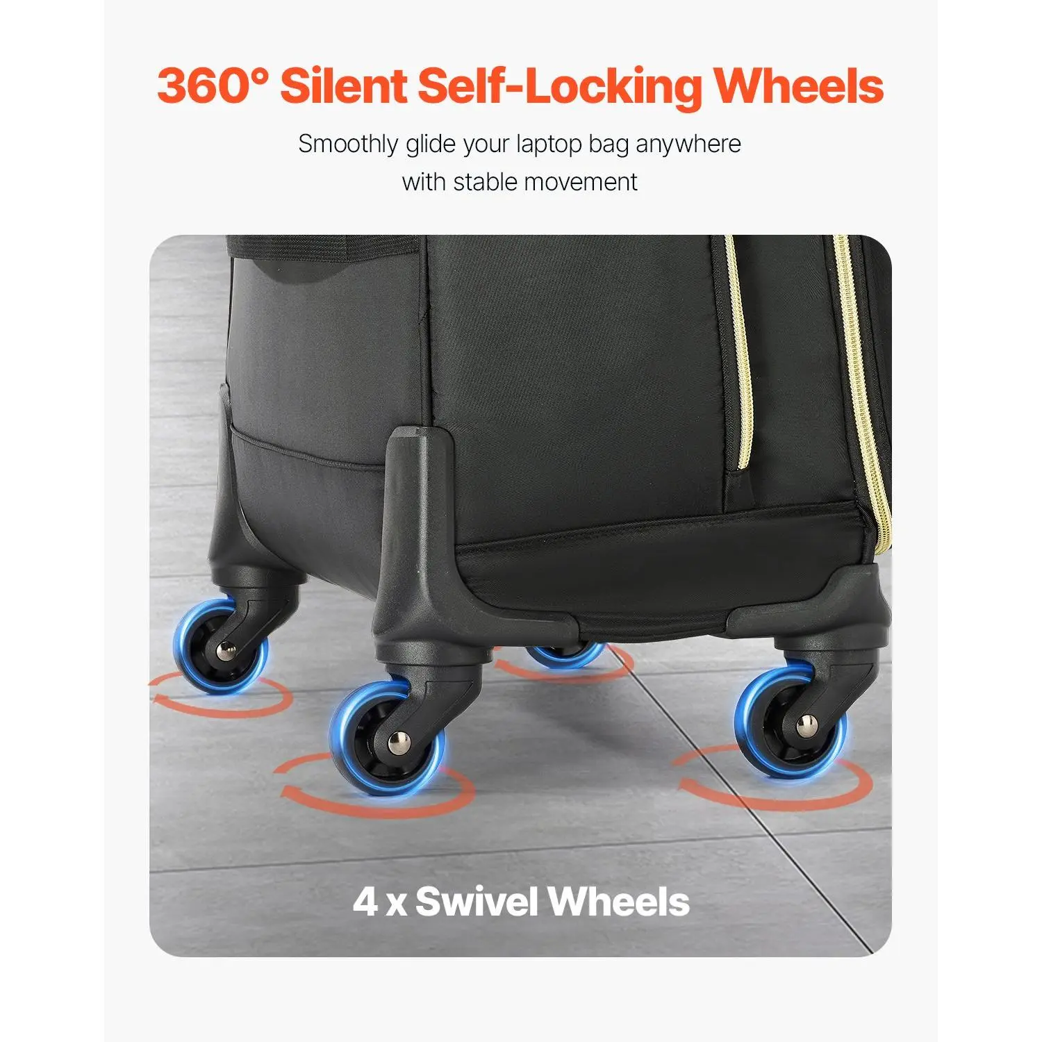 VEVOR Rolling Laptop Bag, Fits Up to 17.3 Inch Laptop, Wheeled Briefcase, Roller Computer Tote Bag with 4 Spinner Wheels TSA Lock, Laptop Case for Work Travel Business, Women Men (Black Gold)Travel SmartDevice ProtectionLoad LighteningReliable SecurityCarry-On FriendlyEnhanced DurabilityItem Model Number: 17.5-9.5-16.5A, Number of Wheels: 4, Main Material: 1680D Oxford Fabric Waterproof Coating, Adjustable Rod Levels: 4