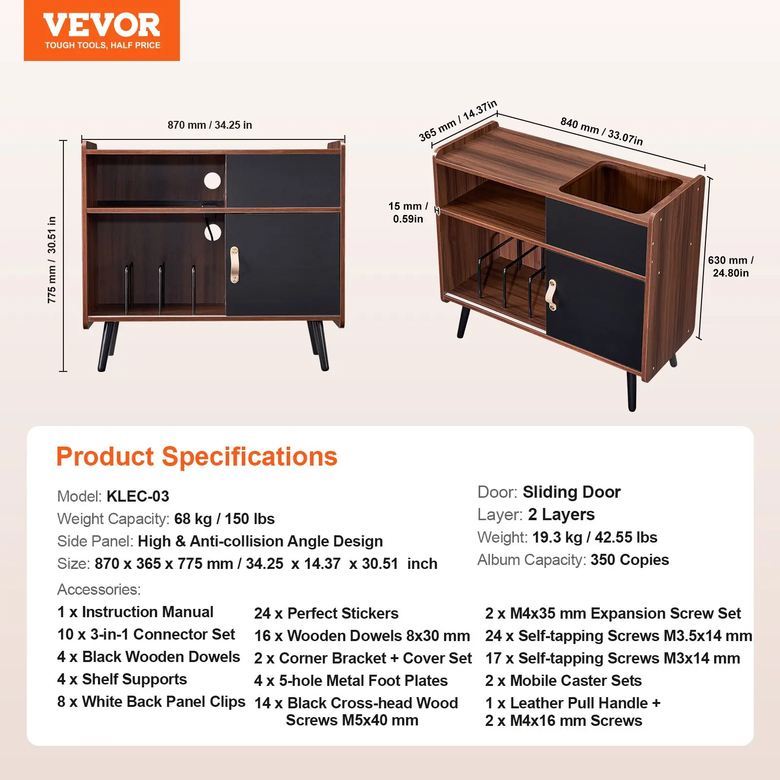 VEVOR Record Player Stand, Turntable Stand Holds Up to 220 Albums, Vintage Vinyl Record Cabinet with Removable Shelves, Record Player Table with Adjustable Height for Living Room, Bedroom, Brown