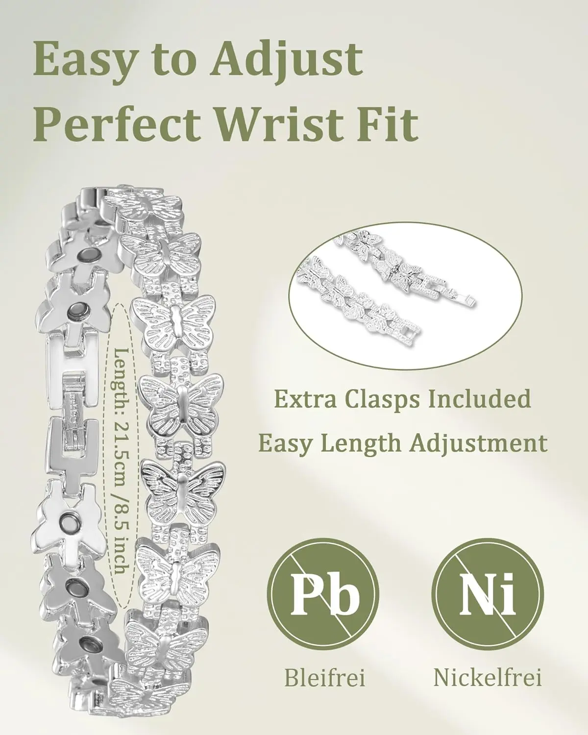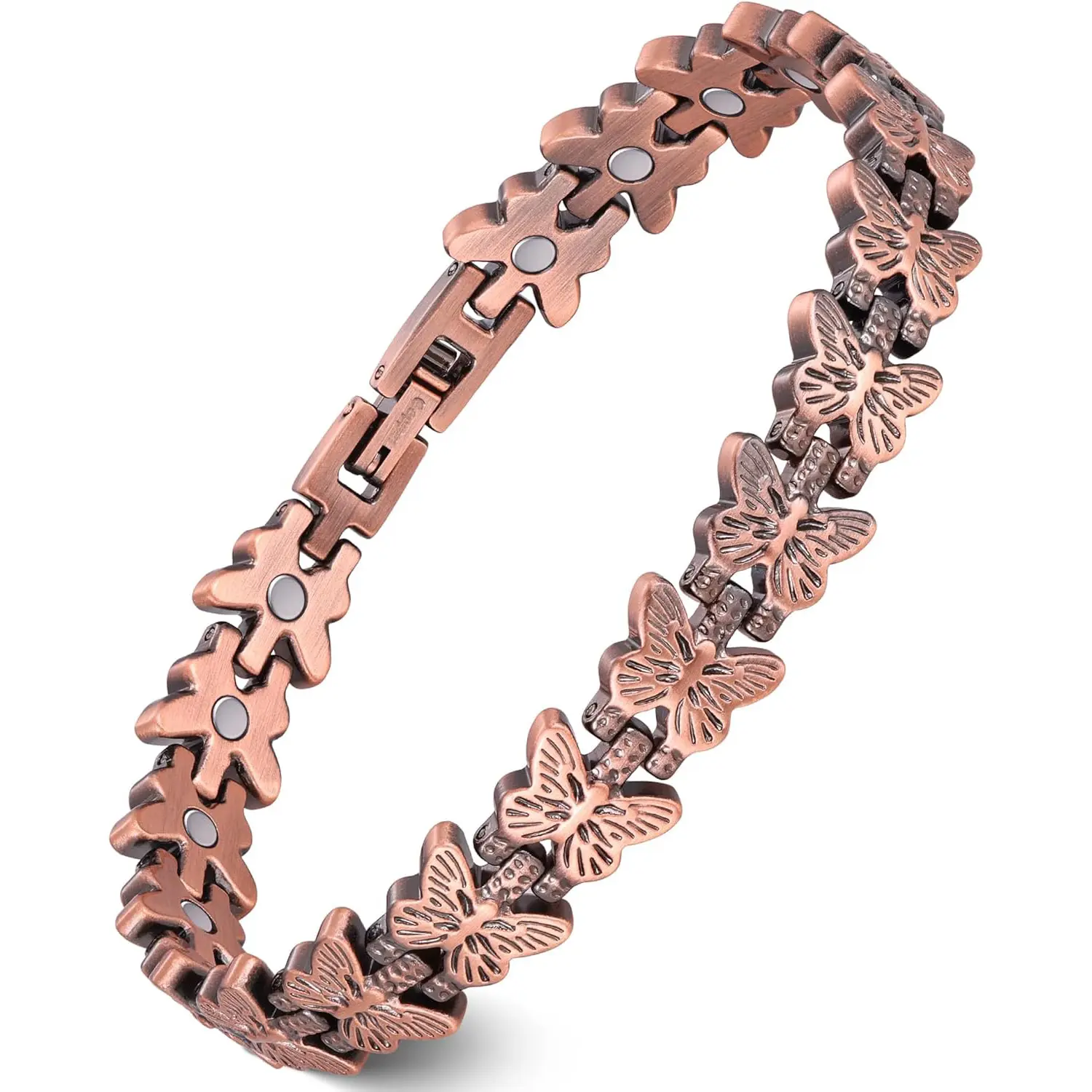 Ā·WELLNESS & STYLE: The The pure copper braceletās butterfly-engraved copper links embody freedom and transformation, adding refined artistry and meaning to your wellness jewelry collection.
