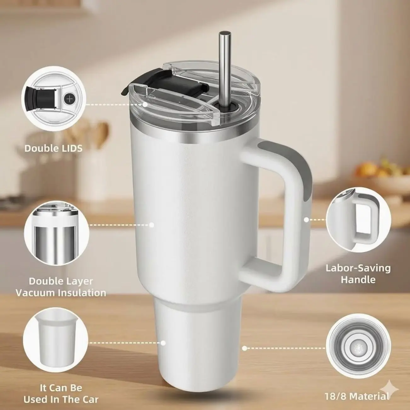 Cupholder Friendly Design Despite its large capacity, the tumbler features a clever tapered base designed to fit perfectly into standard vehicle cupholders. It is the ultimate travel companion for your daily commute or weekend adventures.
