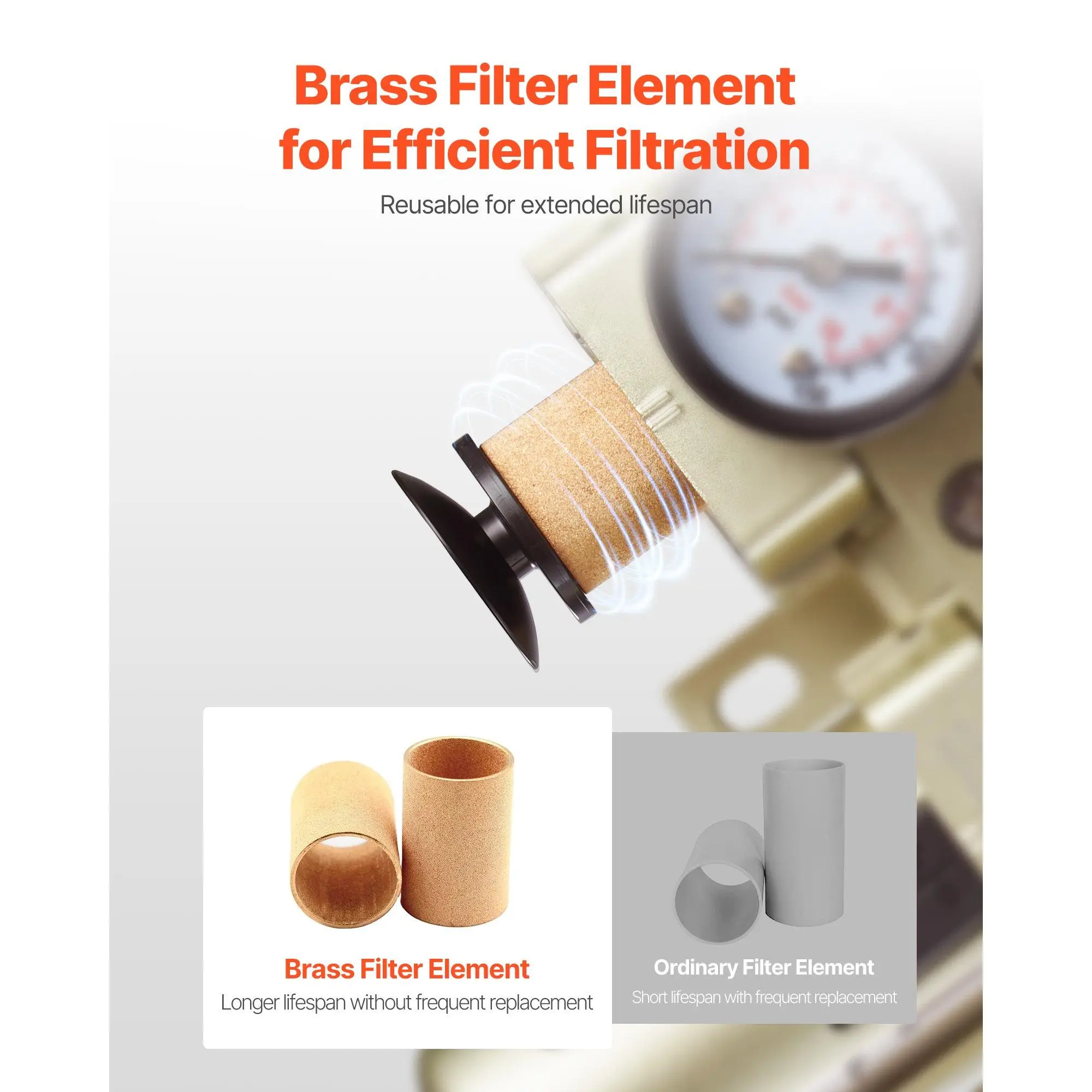Deliver clean and dry compressed air with VEVOR air compressor filter regulator. It combines 3-stage precise filtration and stable pressure regulation. With 5m brass filter, 1m fiber filter, and 0.01m ultrafine sponge filter element, it effectively removes moisture, impurities, and particles.