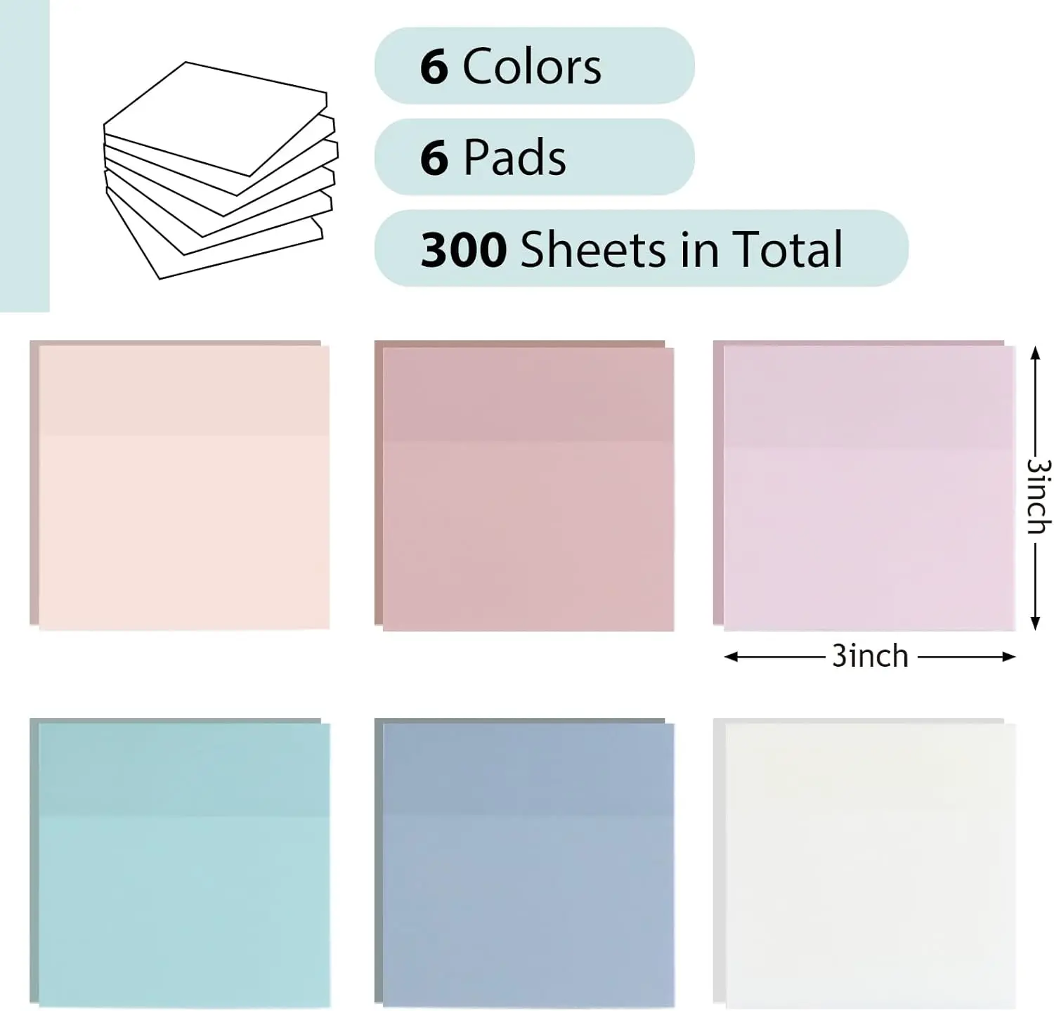 ·Product Inclusions: This set includes 300 sheets of 3*3 inch transparent sticky notes in total. Every pack offers 6 different colors to choose from a variety of occasions. This set is packaged into 6 pads, and every pad includes 50 sheets of notes.
