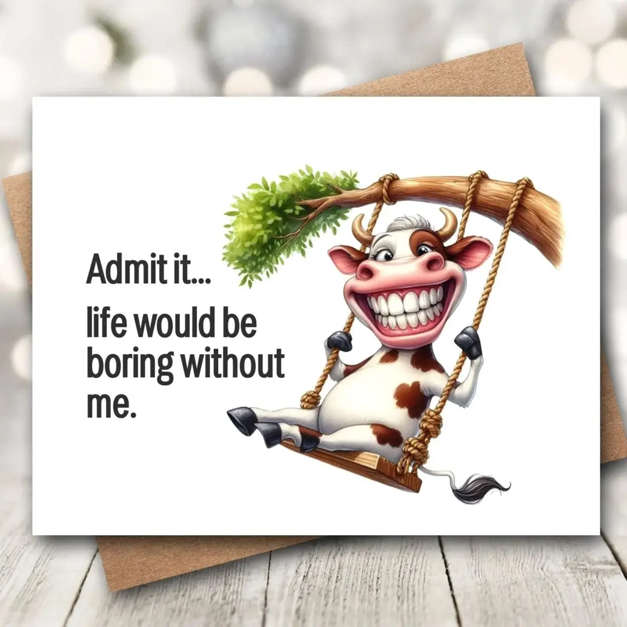 5. Funny Friend Card | Life Would Be Boring | Cute Cow Greeting Card