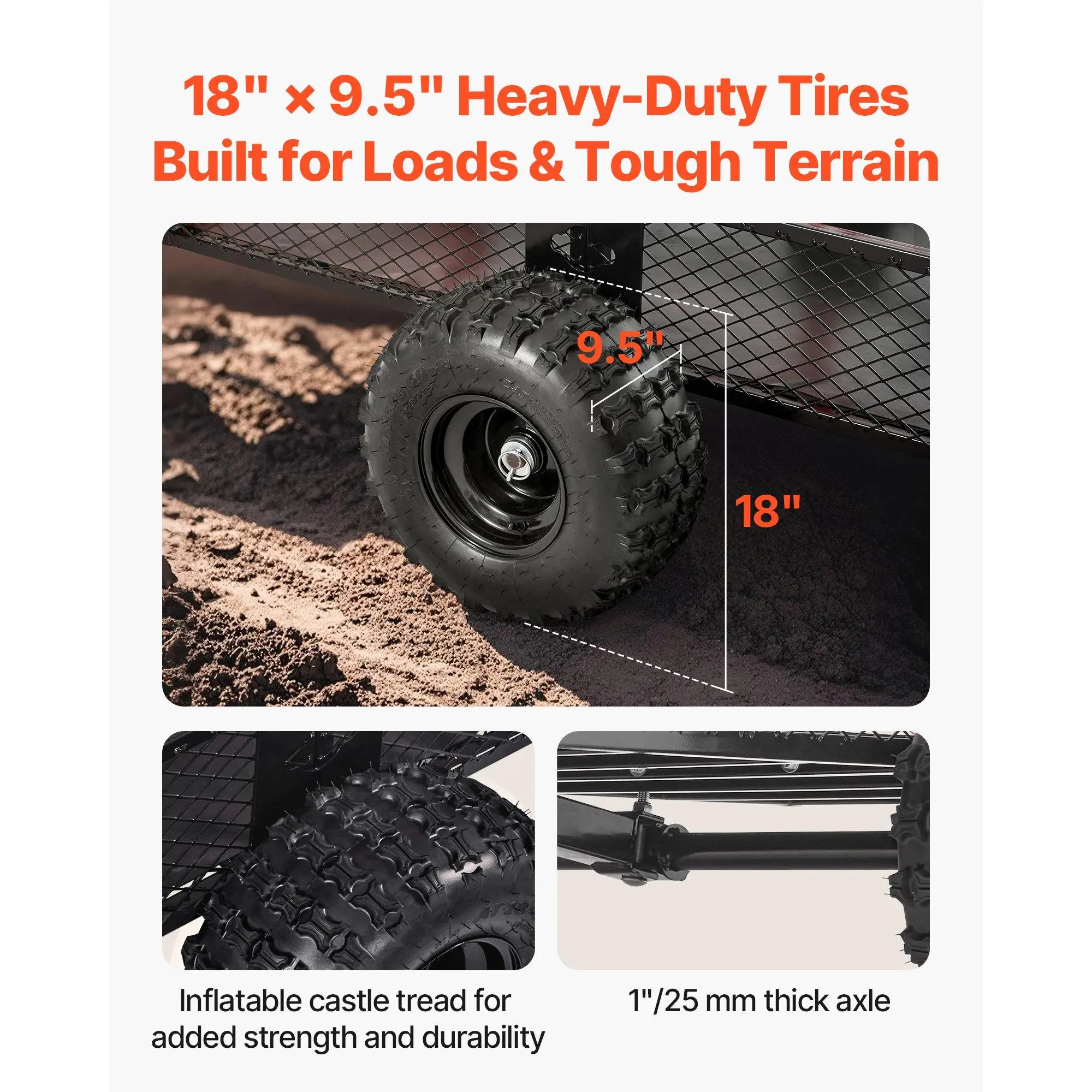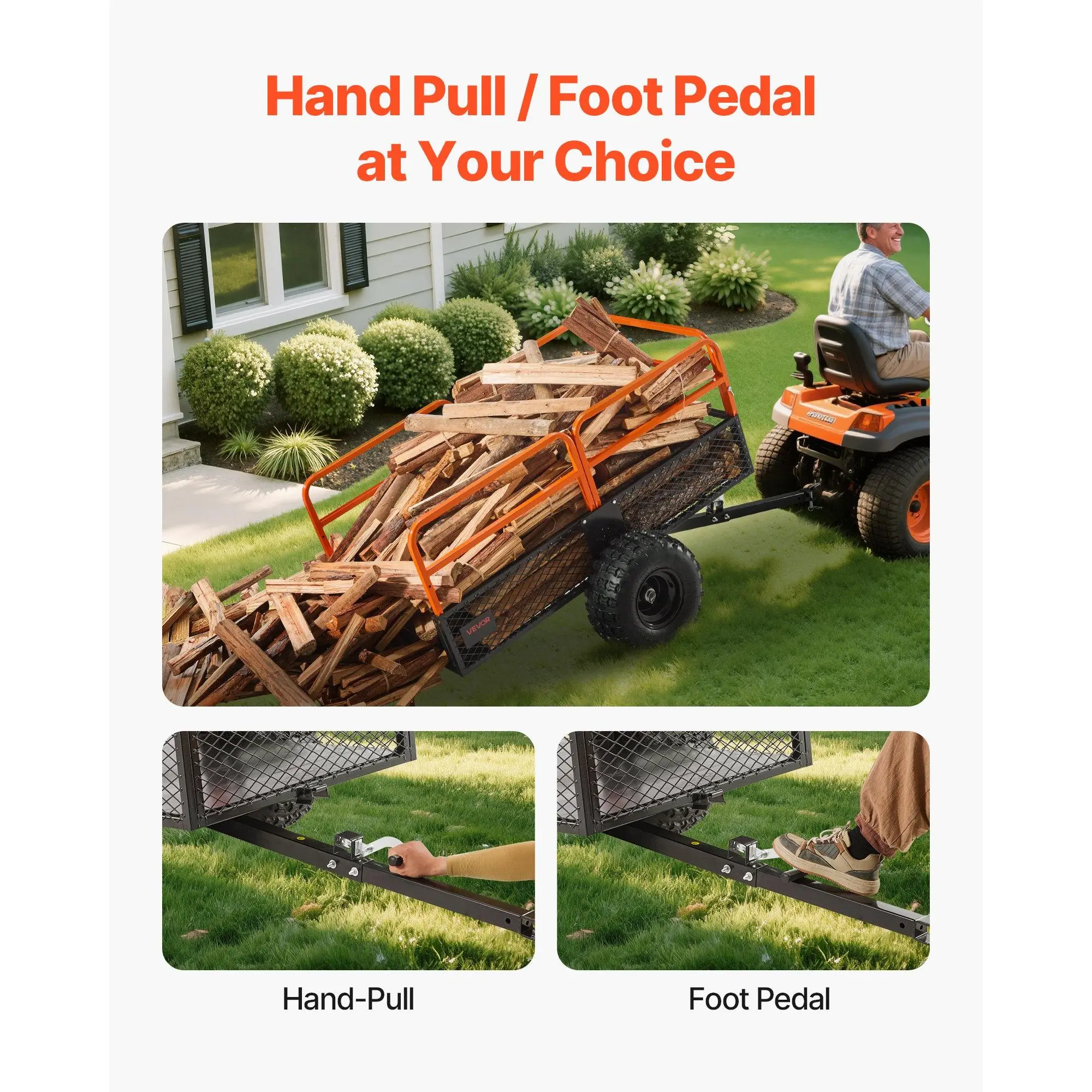 VEVOR Garden Utility Trailer, 28 Cu. Ft. 1800lbs, ATV UTV Trailer, Tow Behind Steel Dump Trailers, Removable Rear Panel, Heavy Duty Pull Behind Yard Trailers for Lawn Mower Tractor Garden WasteTrailer HandlePin SizeGuard PanelsTwo Dumping OptionsEnhanced User ExperienceLarge TiresWheel Size: 18× 9.5/ 45.72× 24.13 cm, Weight Capacity: 1800 lbs/ 800.59 kg, Capacity: 28 cu. ft, Item Model Number: TC4288, Net Weight: 148.81 lbs/ 67.5 kg, Product Size: 87.01×31.89×37.01 inch/ 221×81×94 cm