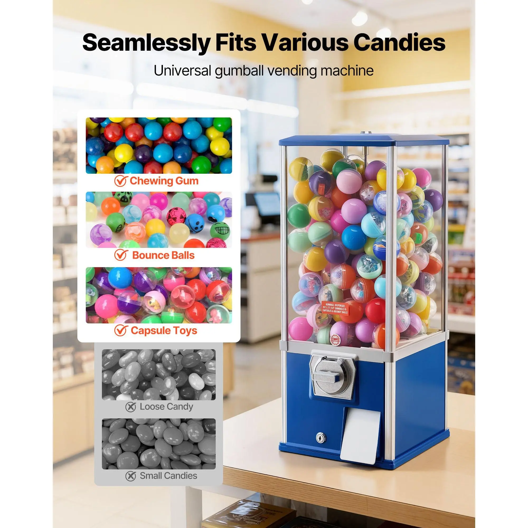 VEVOR retro candy vending machine combines practical earning use with decorative appeal. It suits retail spaces, family game rooms, and offices, and can be used as a party prize device or a behavior reward system. Offered in multiple colors, it complements a wide range of dcor styles.