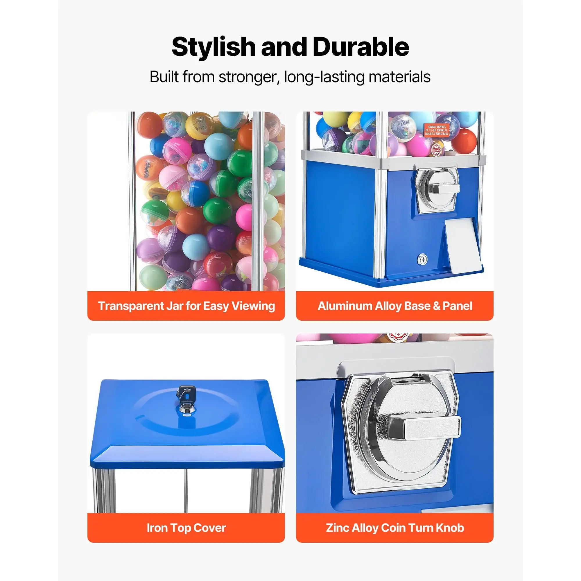 Designed for steady coin use, our 25-inch/635mm tabletop gumball machine combines a vintage look with practical operation. The smooth dispensing system fits candy and capsules, while the modular structure allows quick cleaning. Ideal for amusement parks, shops, arcades, and family gatherings.