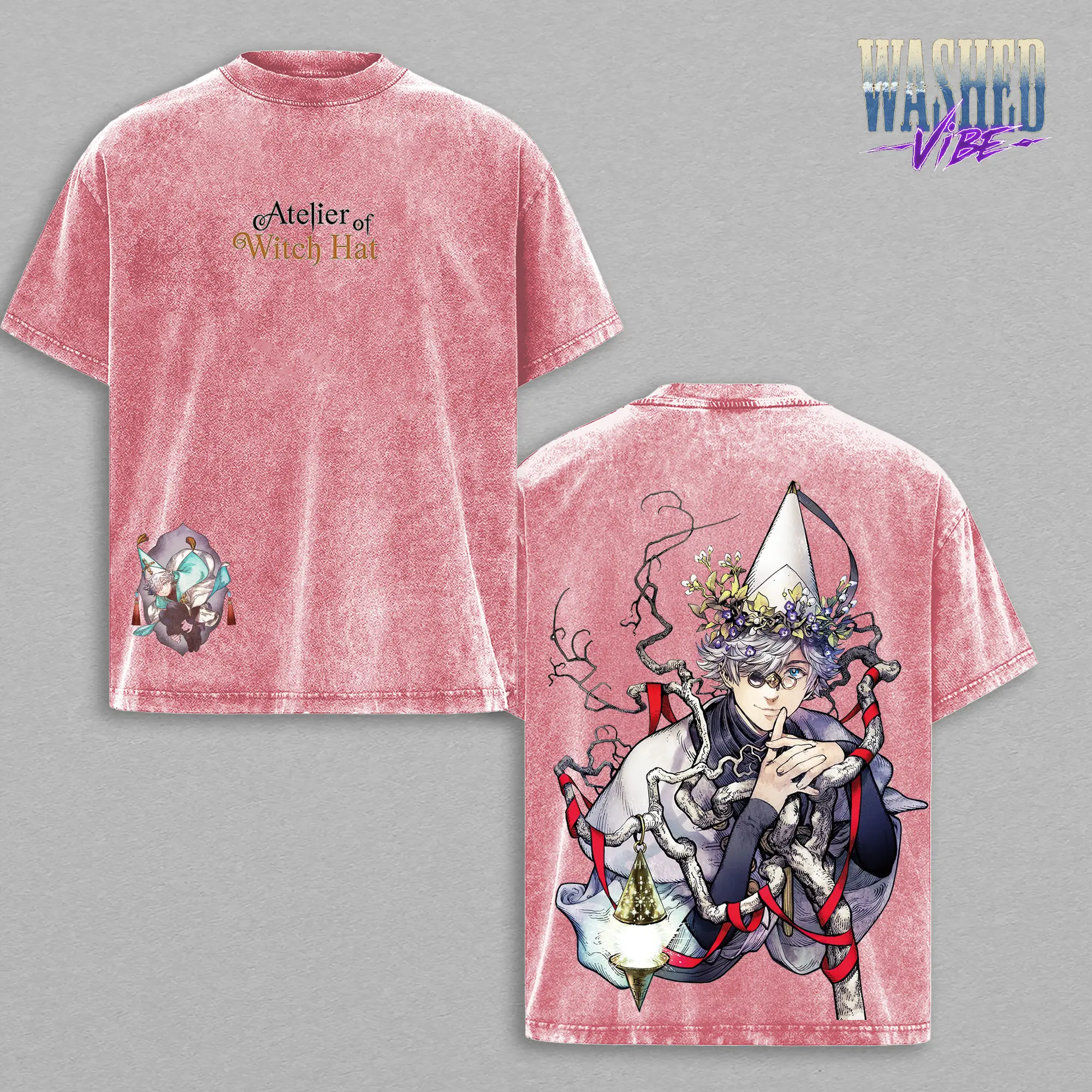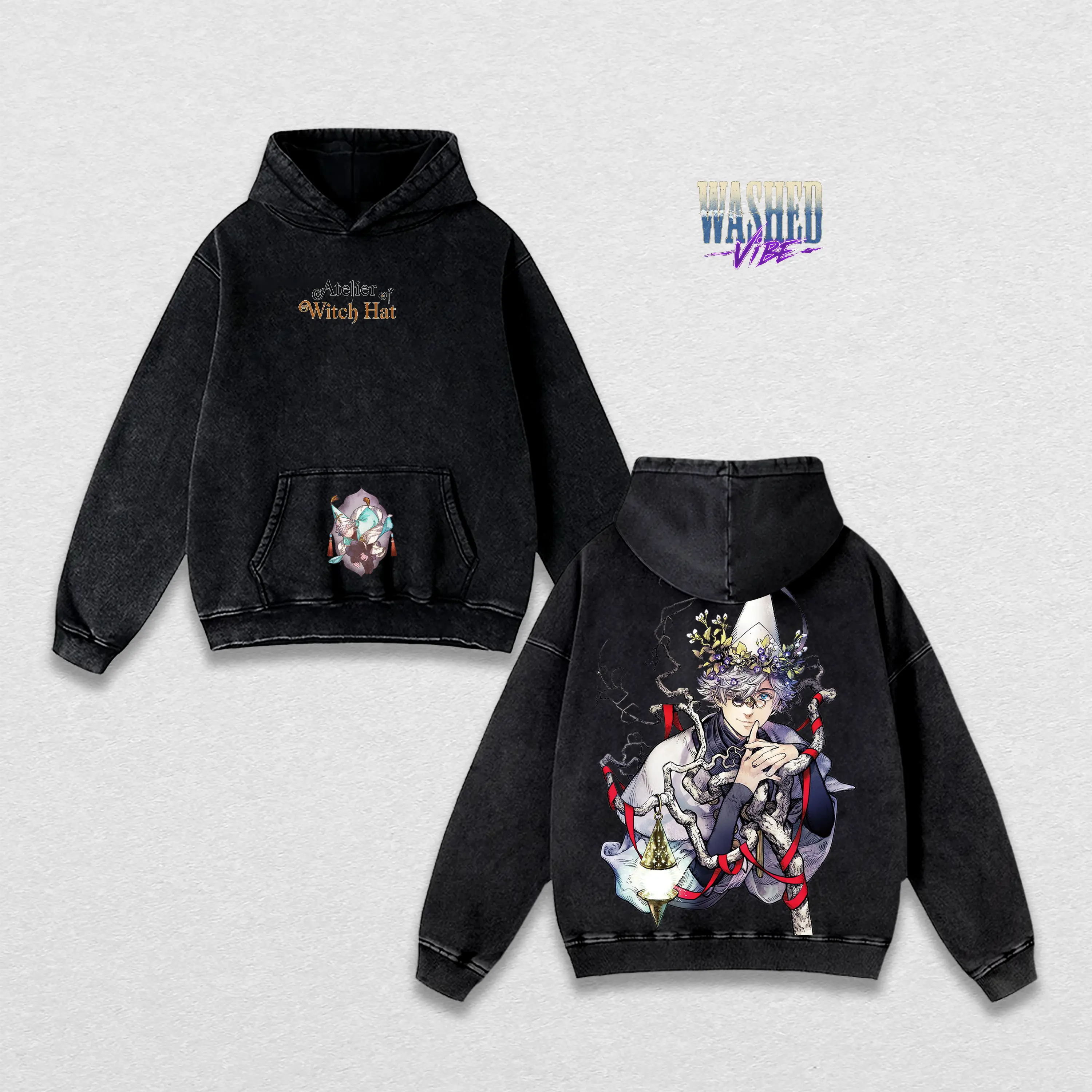 Retro Heavy Limited  Vintage Qifrey - Witch Hat Atelier Washed Oversized Graphic Tee and Hoodie Washed - Unisex T-shirt - Hoodie, WHA Double Printed T-Shirt, Heavyweight Cotton Unisex Streetwear Top, Gym Pump Cover, Summers Outfits, Gift for Anime Fans