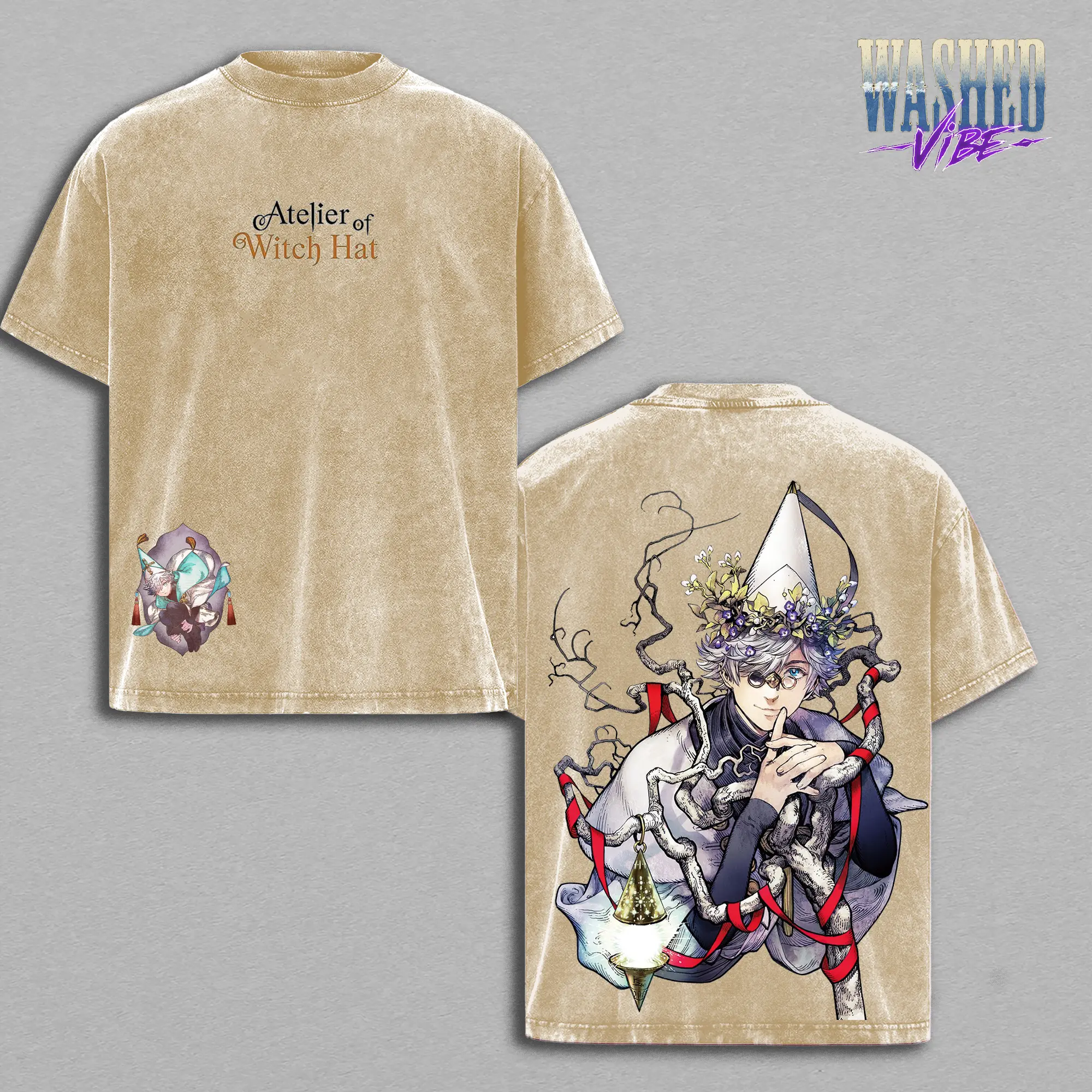 5. Retro Heavy Limited Vintage Qifrey - Witch Hat Atelier Washed Oversized Graphic Tee and Hoodie Washed - Unisex T-shirt - Hoodie, WHA Double Printed T-Shirt, Heavyweight Cotton Unisex Streetwear Top, Gym Pump Cover, Summers Outfits, Gift for Anime Fans
