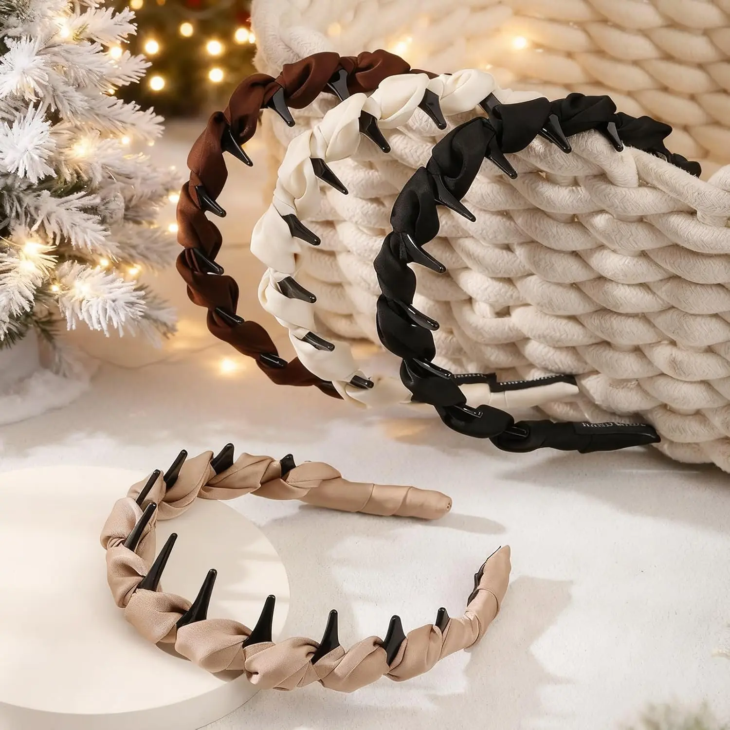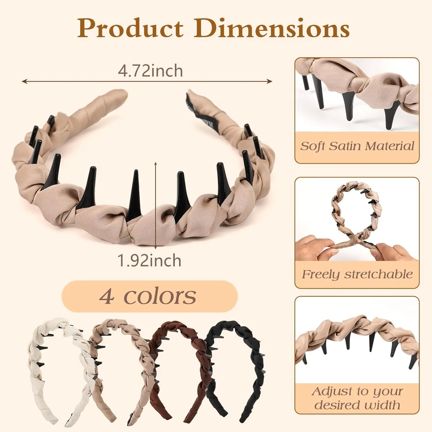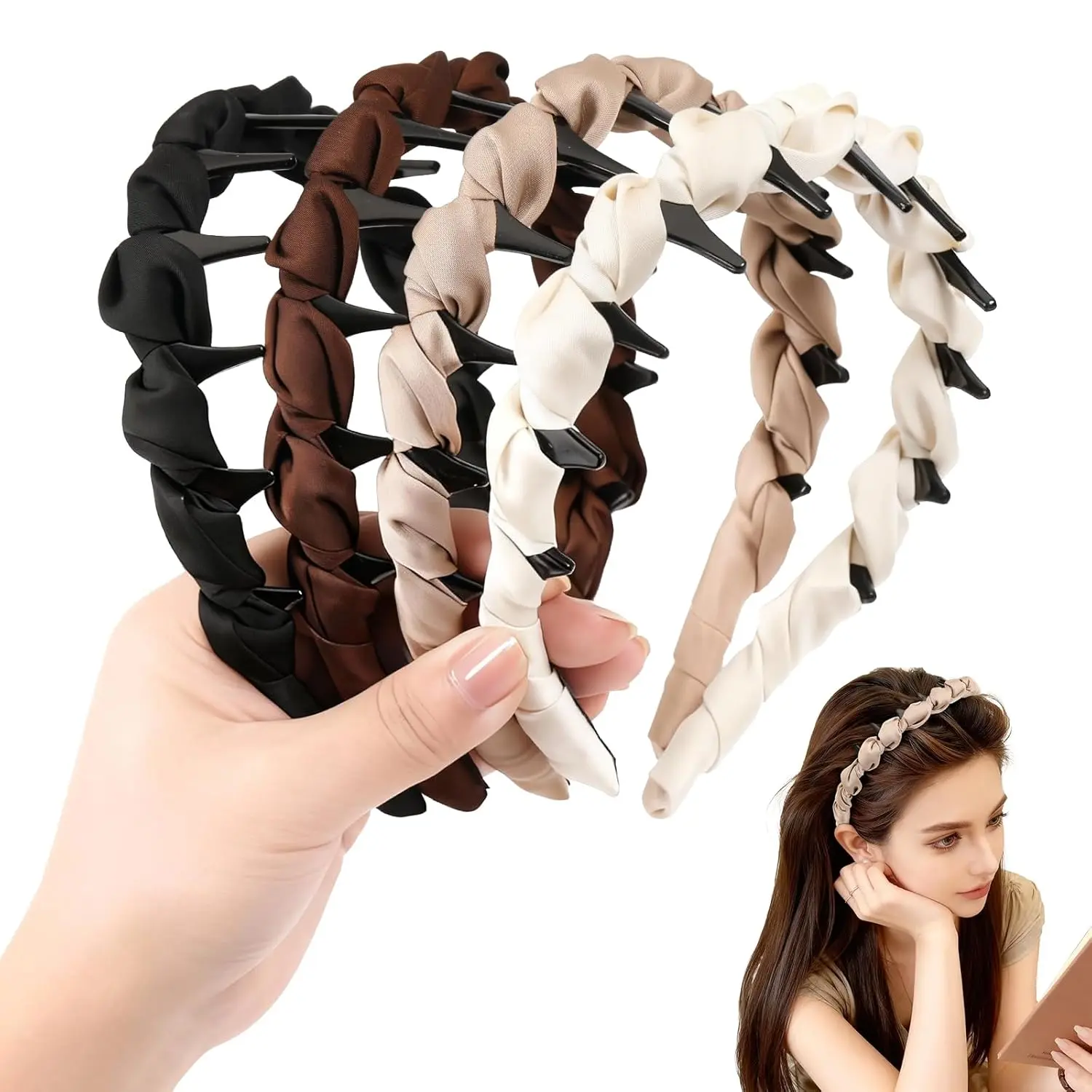 4 Pcs High Cranium Headbands for Women Girls - Non Slip Zig Zag Headband with Teeth - Retro Plastic Satin Braided Comb Headband Fashion Accessories for High Skull - Ideal Gifts for Women