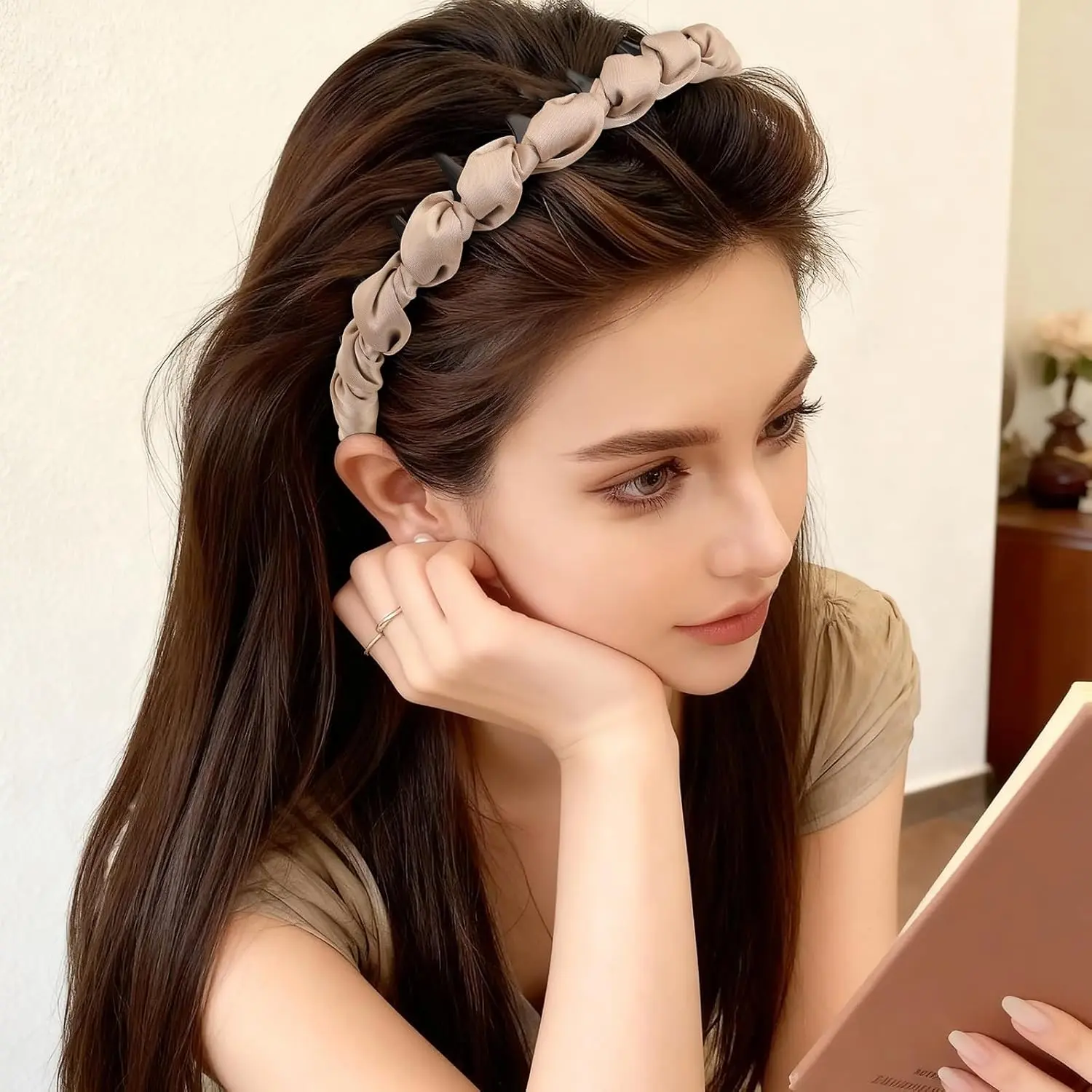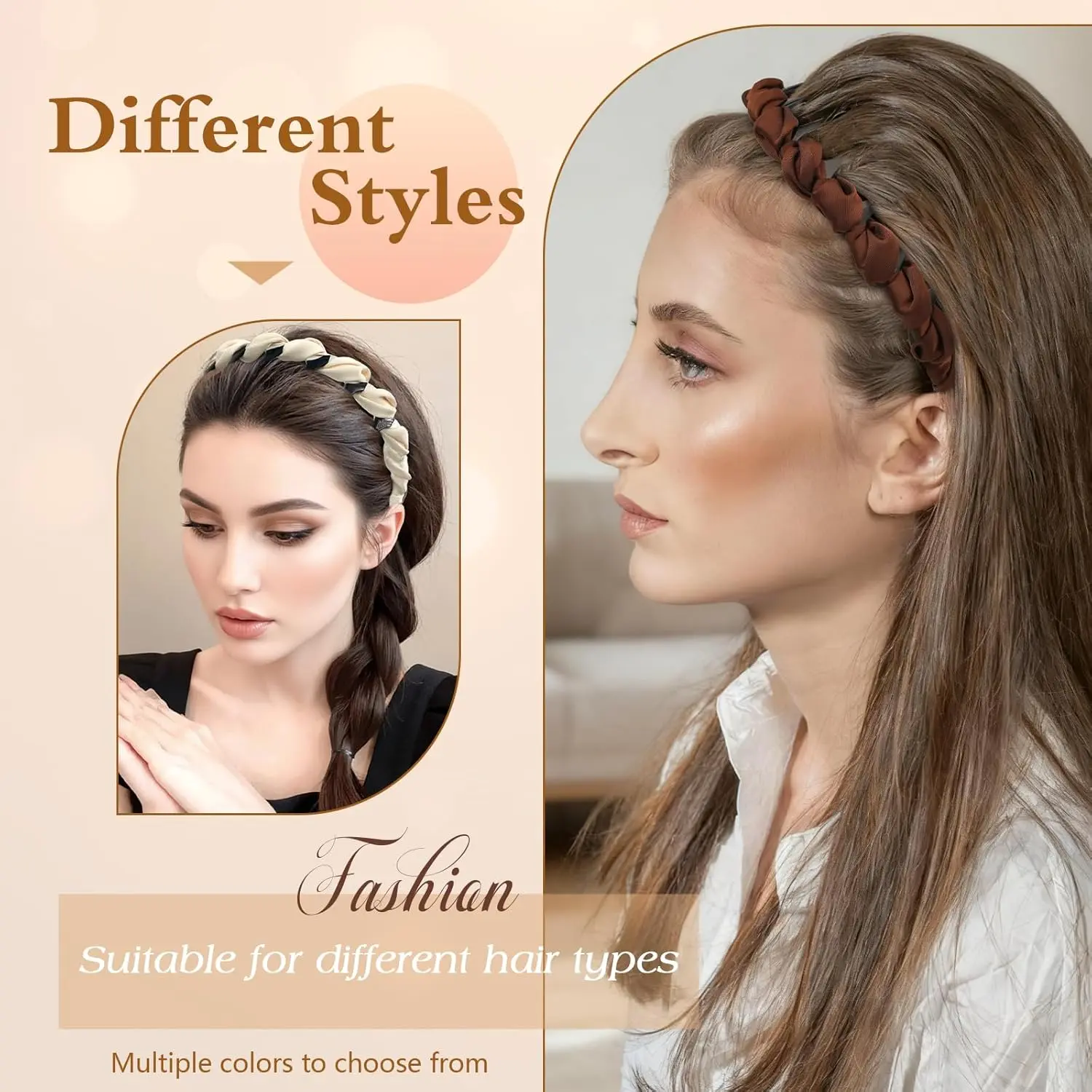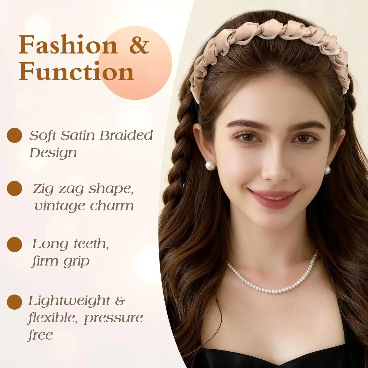 4 Pcs High Cranium Headbands for Women Girls - Non Slip Zig Zag Headband with Teeth - Retro Plastic Satin Braided Comb Headband Fashion Accessories for High Skull - Ideal Gifts for Women