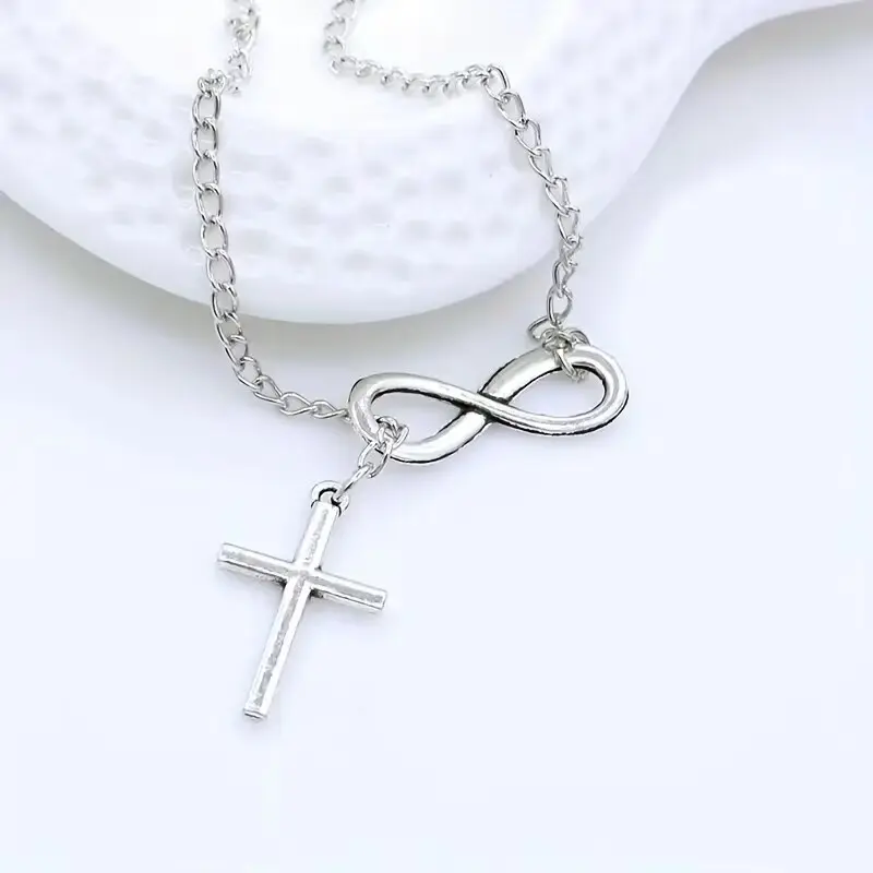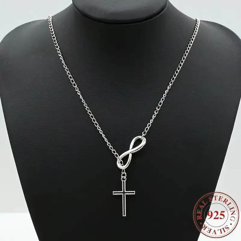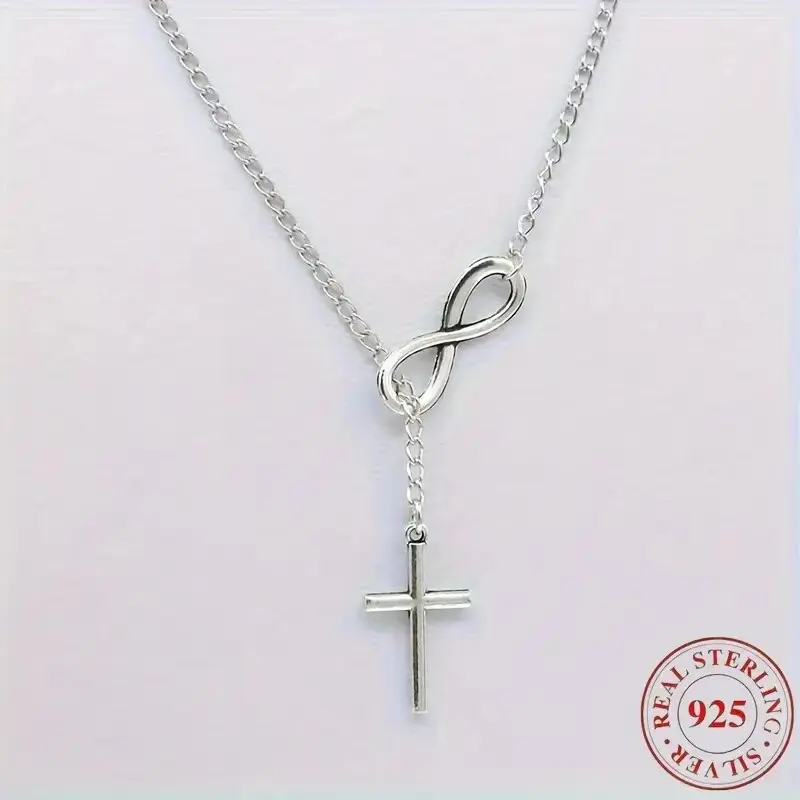 S925 Sterling Silver Infinity Cross Pendant Necklace for Women, Religious Faith Jewelry, Hypoallergenic Y2K Lariat Necklace Gift