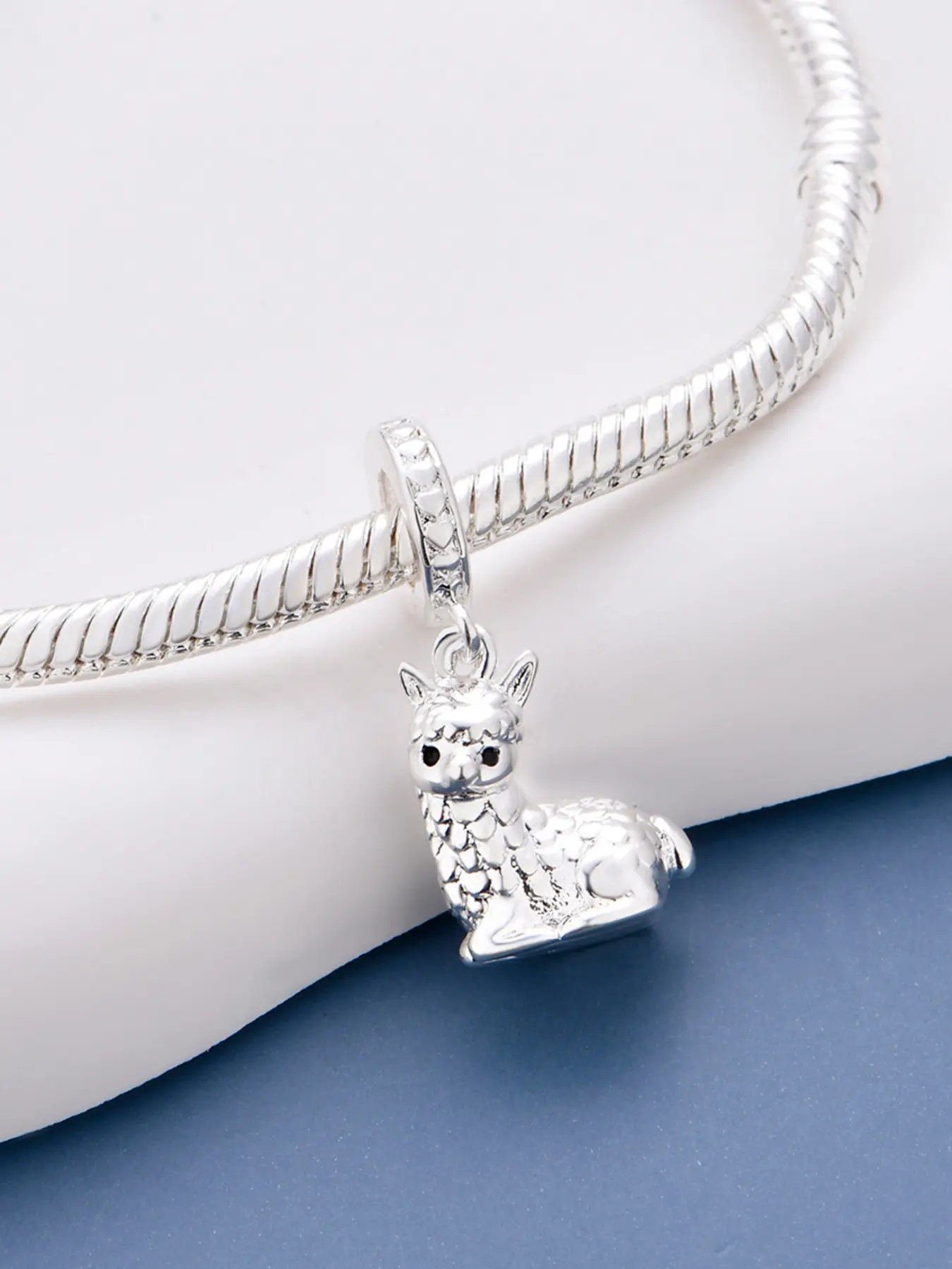 Cute Cartoon Alpaca Charm Pendant, Copper Plated Silver Color, Animal Pattern, Perfect Gift for Friends, All Seasons Accessory