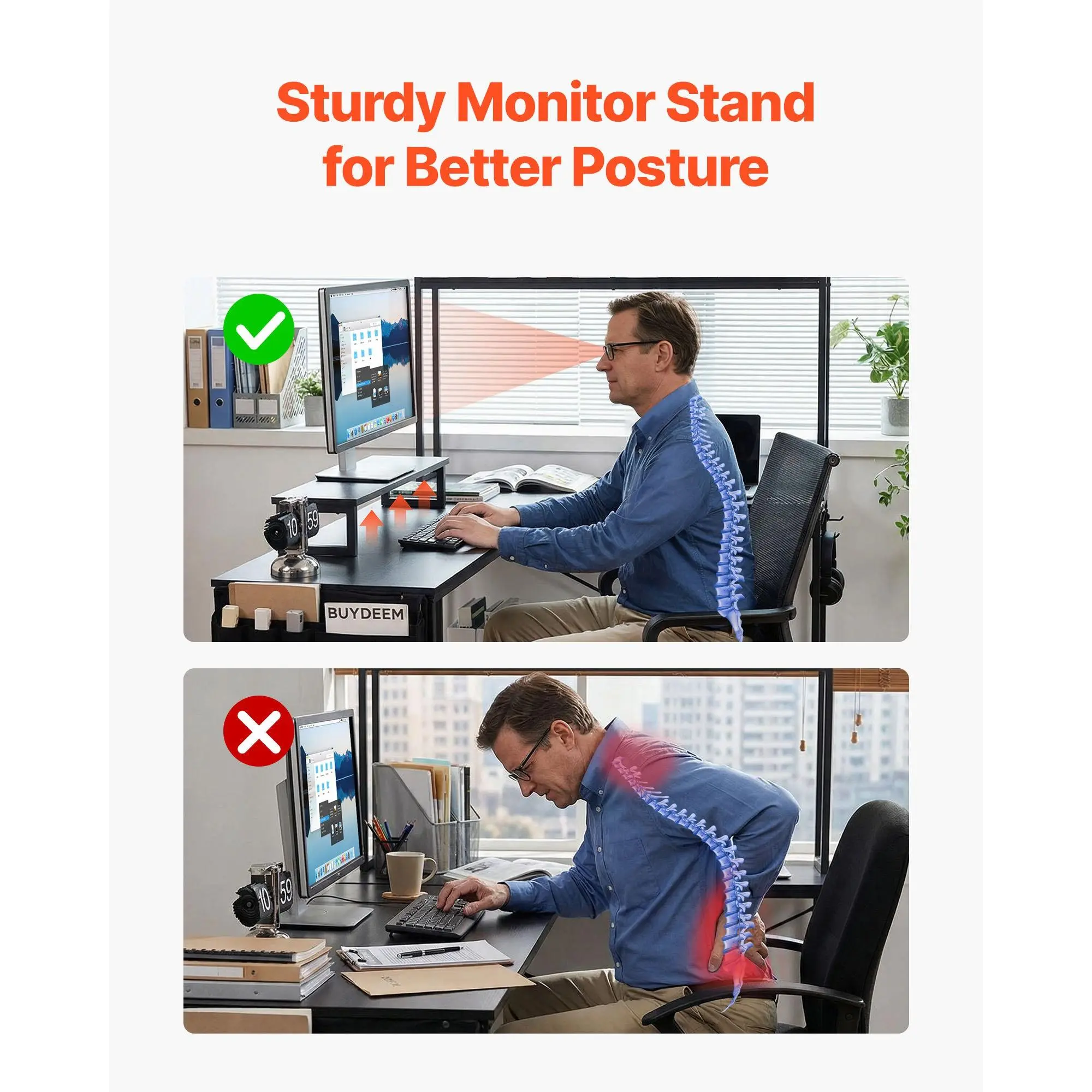 Stable monitor stand elevates your PC screen to a comfortable viewing height while freeing up desk space, helping create a cleaner and more organized workspace.
